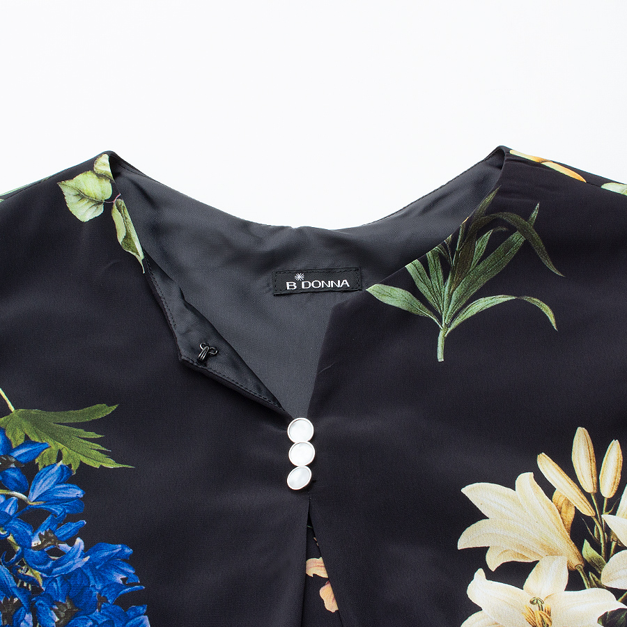 【初回レンタル】ボタニカル柄ワンピース(Mサイズ / ブラック / B DONNA(ビドンナ))