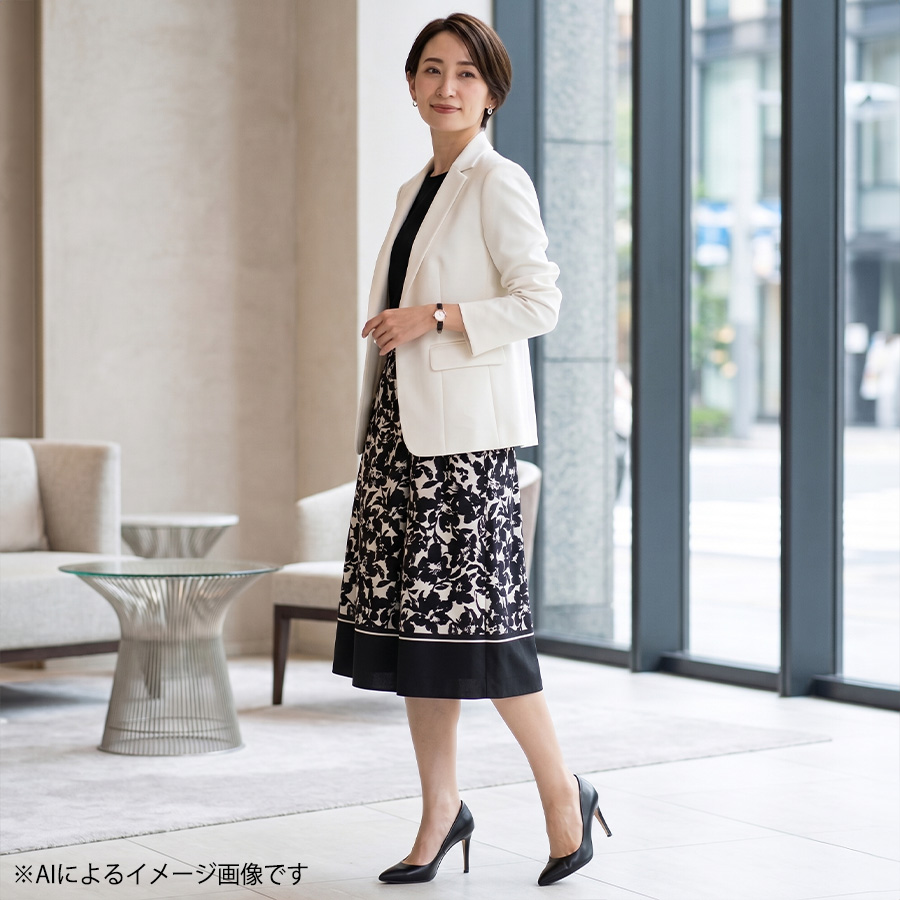ビジネスはもちろん、セレモニーや女子会など幅広いシーンで活躍する一着です。