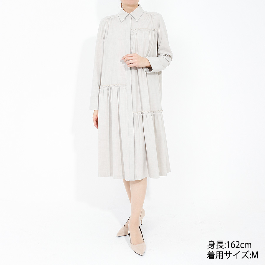 ウエストにタックを施し、自然に広がるフレアシルエットで女性らしさを演出します。