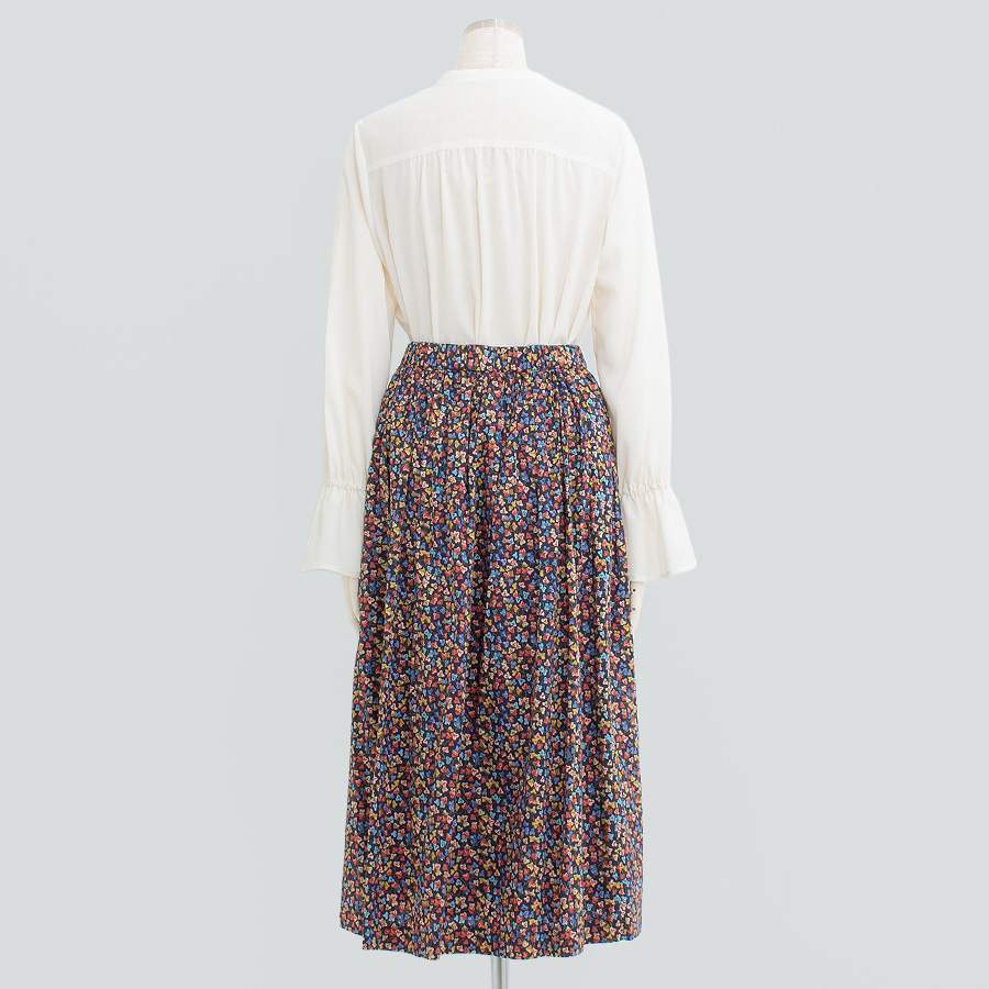 スタンドネックフリルブラウス&プリントフレアスカート(Mサイズ / ホワイト×マルチ )