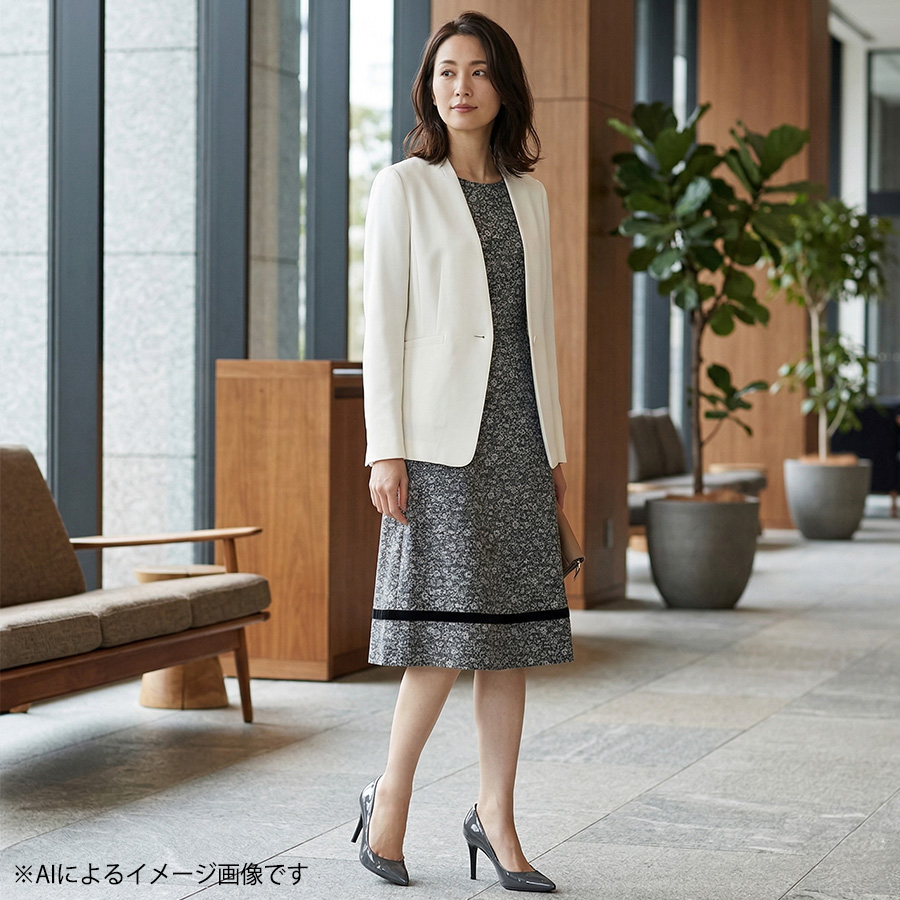 程よく広がるAラインシルエットが上品で女性らしい印象を演出します。