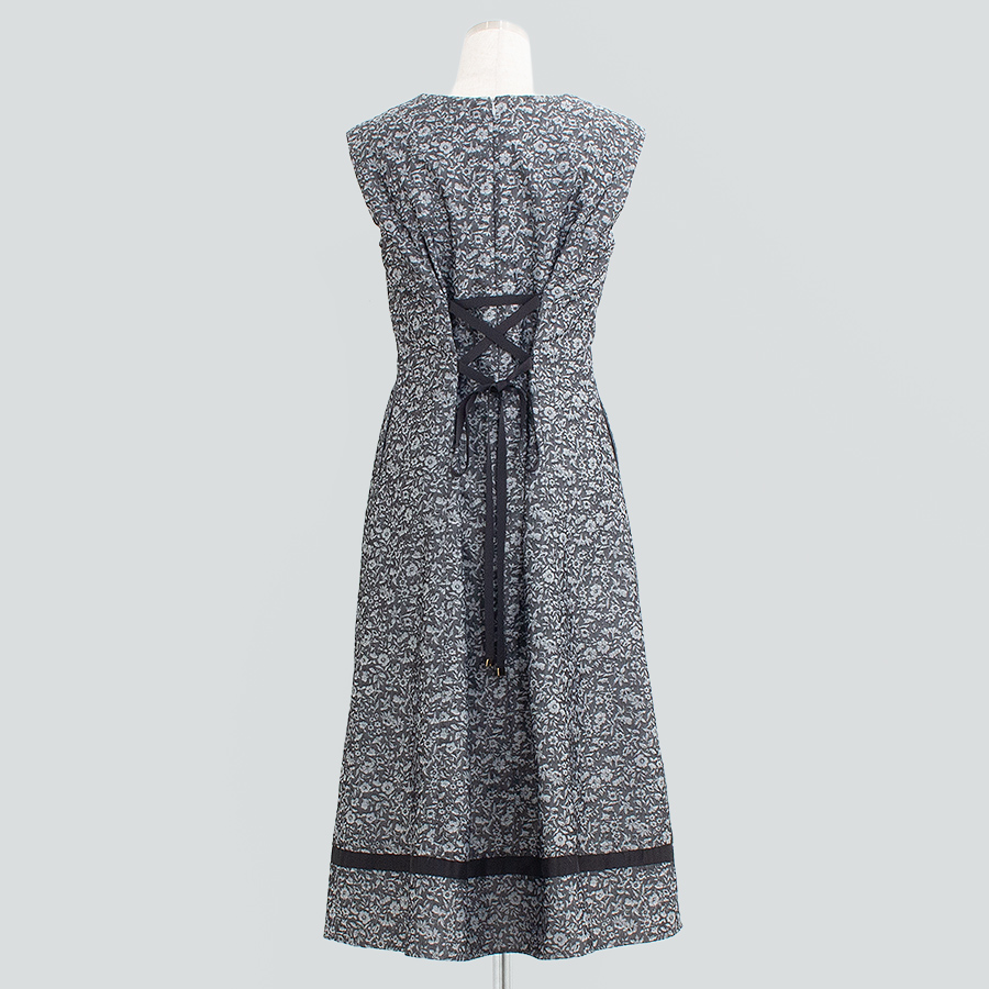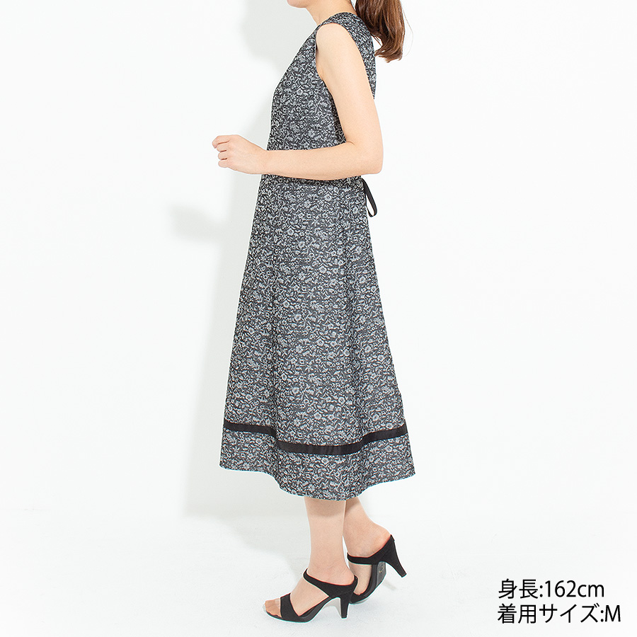 シックな小花柄が魅力のノースリーブワンピース。