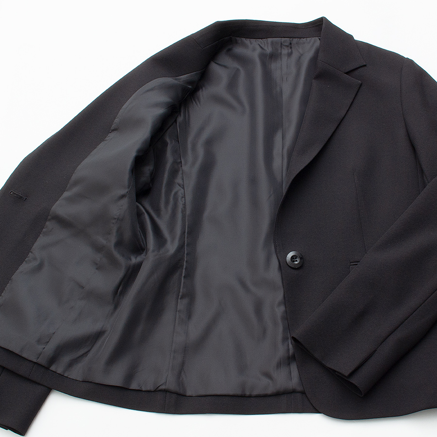 軽やかな素材感で着心地も良く、きちんと感をキープ。