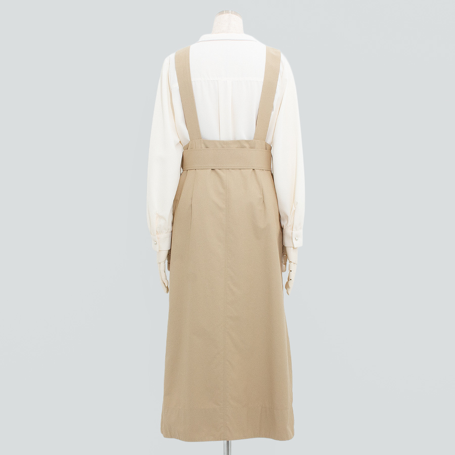 きちんと見えするベルト付きのジャンパースカート。