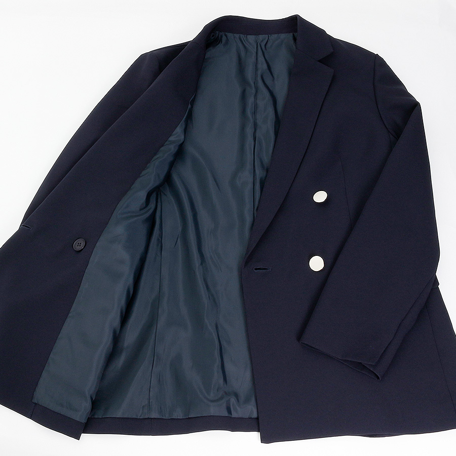 すっきりとしたテーラードカラーと程よいゆとりのシルエットで、洗練された印象に仕上げます。