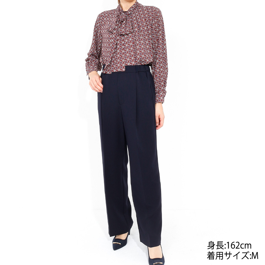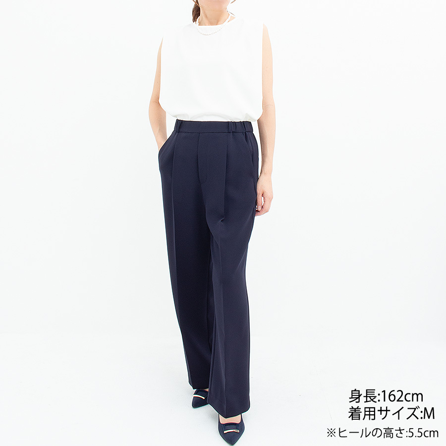 リラックス感のあるタック入りワイドパンツで快適な着心地。