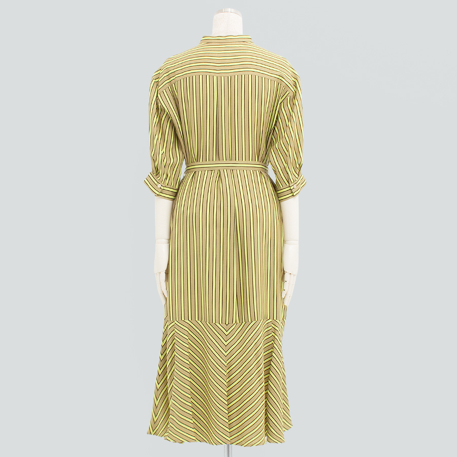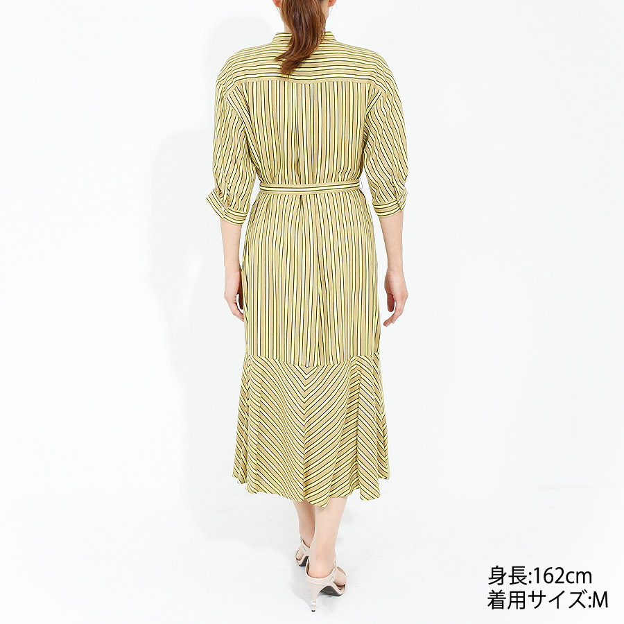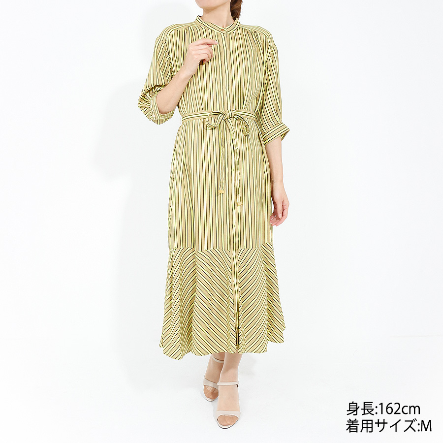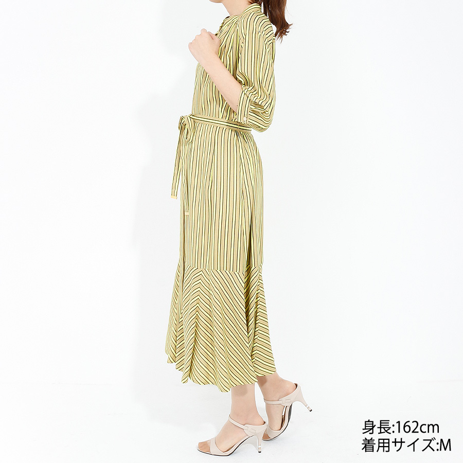 【初回レンタル】リネンタッチストライプワンピース (イエロー)(Mサイズ / イエロー / GRACE CONTINENTAL(グレースコンチネンタル)) [付属品 点:ウエストベルト]