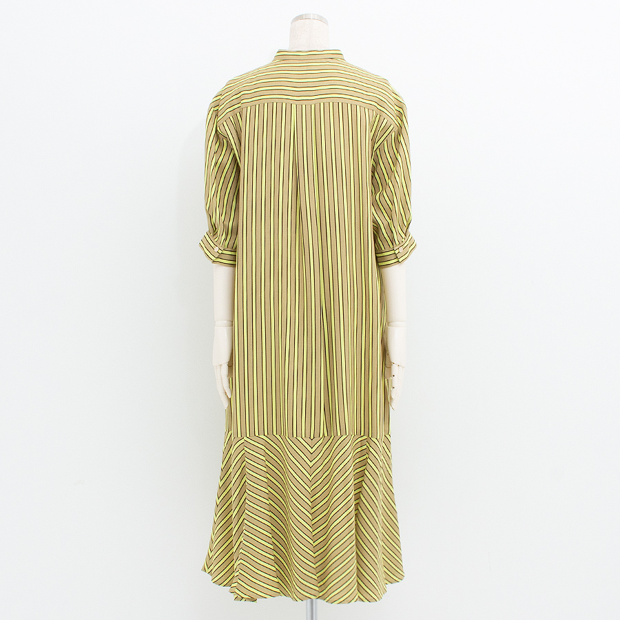爽やかな配色が目を引くストライプワンピース。