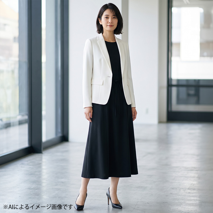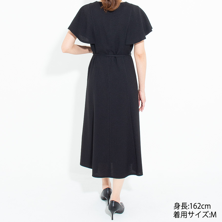 フレアスリーブが程よい華やかさをプラスし、女性らしいシルエットを演出します。
