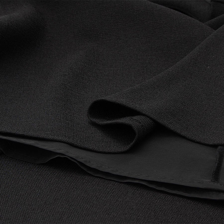 落ち着いた麻調素材のブラックカラーが上品な印象を与えるワンピース。