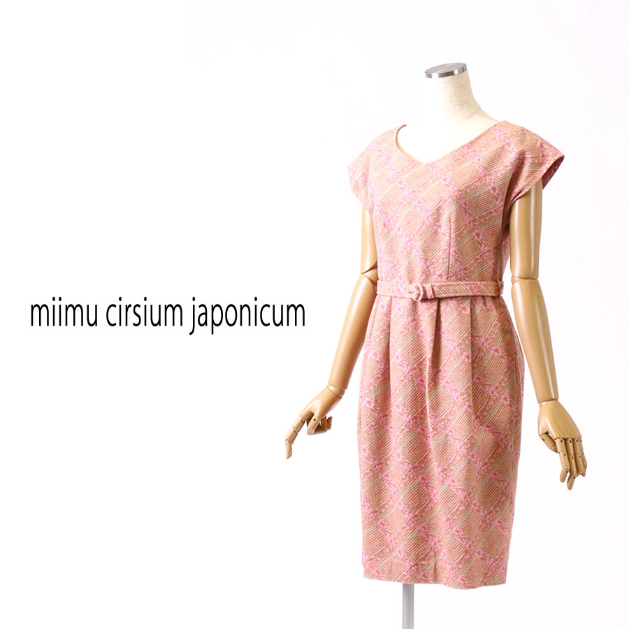 Vネック フレンチスリーブ ワンピース(Mサイズ / ピンク / miimu cirsium japonicum(ミイム サーシアム ジャポ二カム)) [付属品 1点:ベルト]