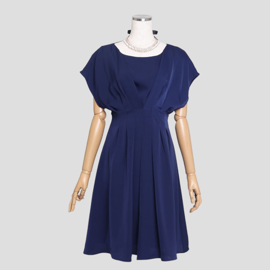 ドルマン フレアー ワンピース(Mサイズ / ネイビー / Bou Jeloud(ブージュルード)) [付属品 1点:ビジューネックレス]