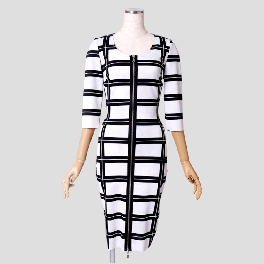 ブロックチェック モチーフフルジップCネックカットオフドレス(XSサイズ / Nero / RINASCIMENTO(リナシメント))