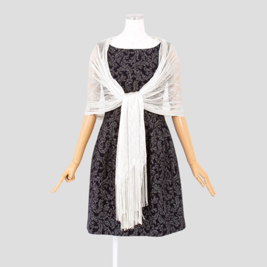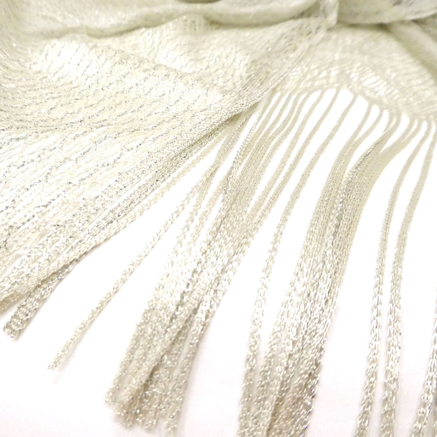 ★スタッフコメント★ラメ糸を使用したメッシュショール。パーティーシーンにはもちろん、巻き方次第で普段使いにもオススメです。
