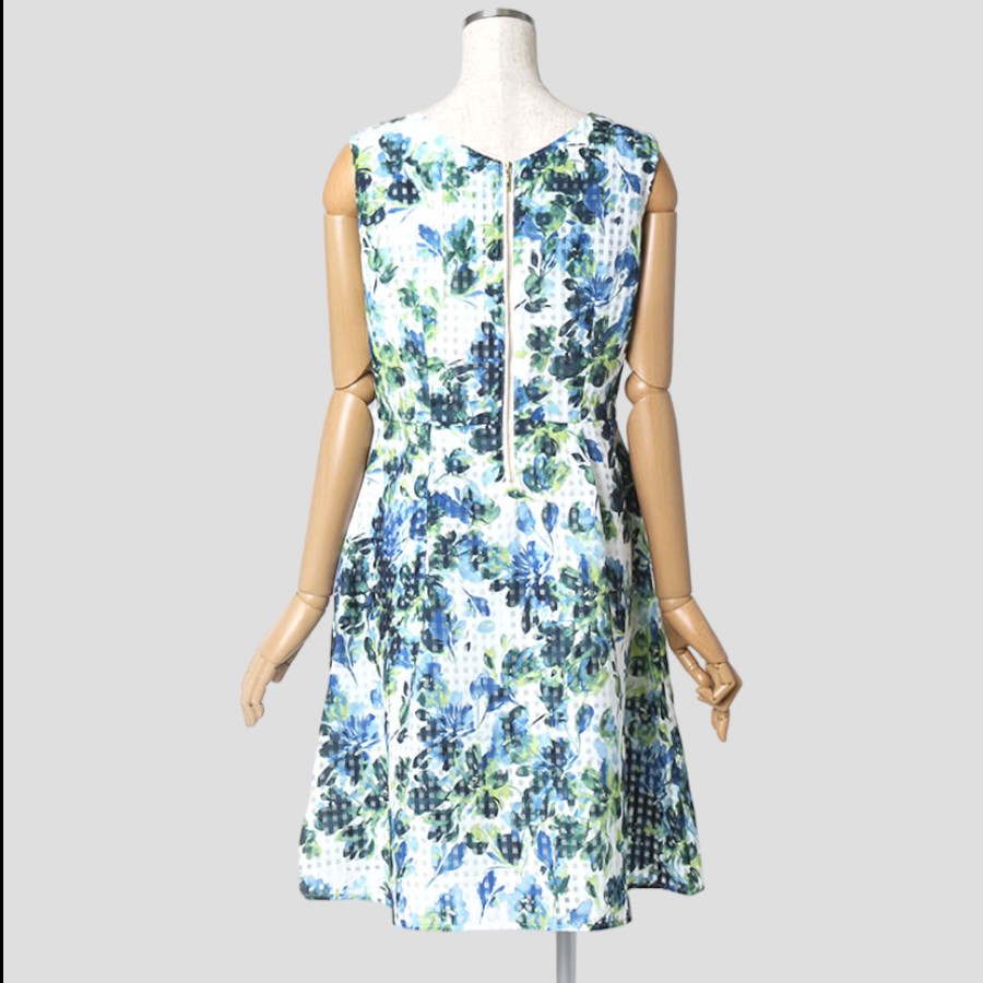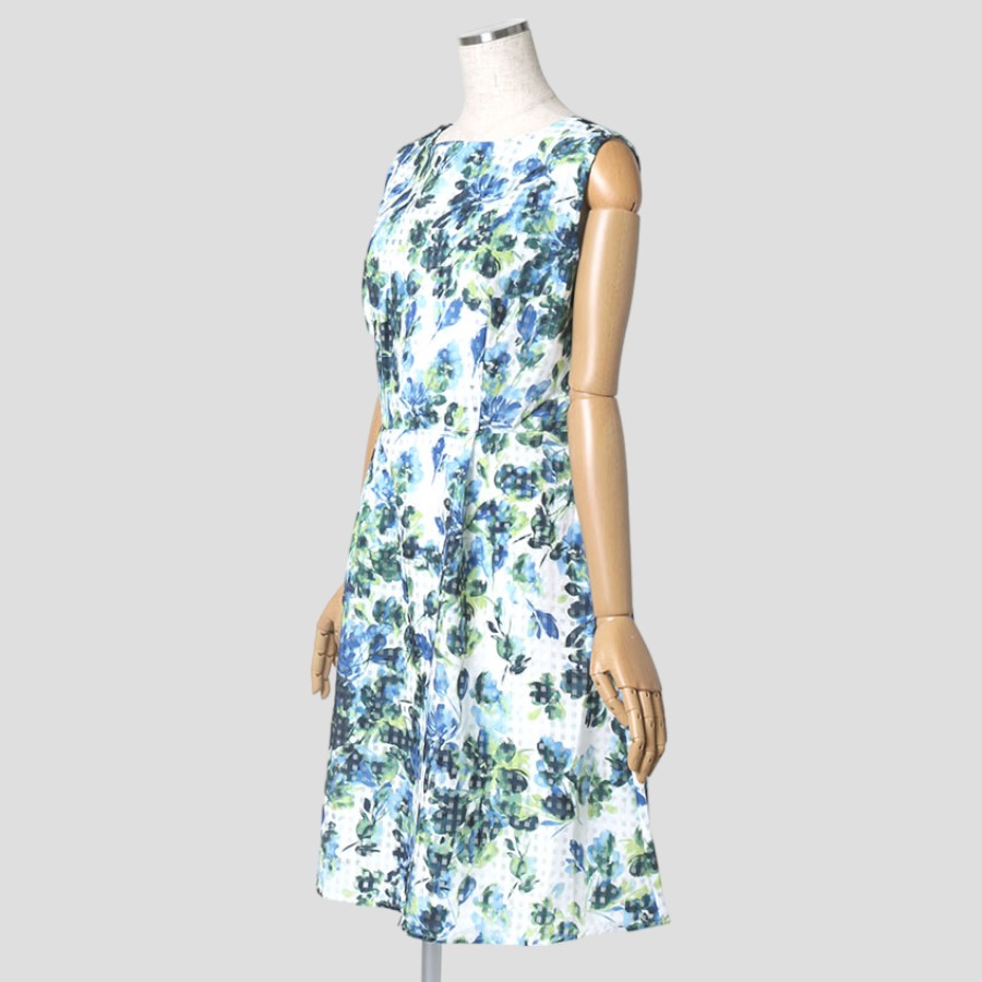 涼しげなカラーの花柄プリントが大人可愛い1着。