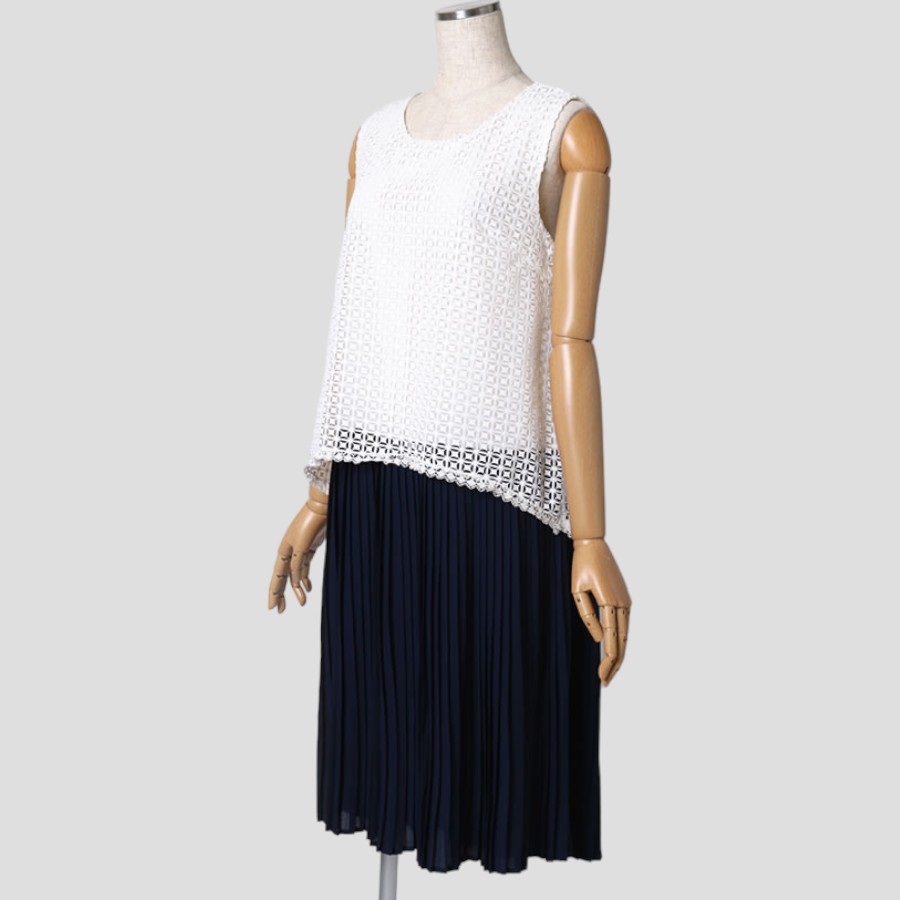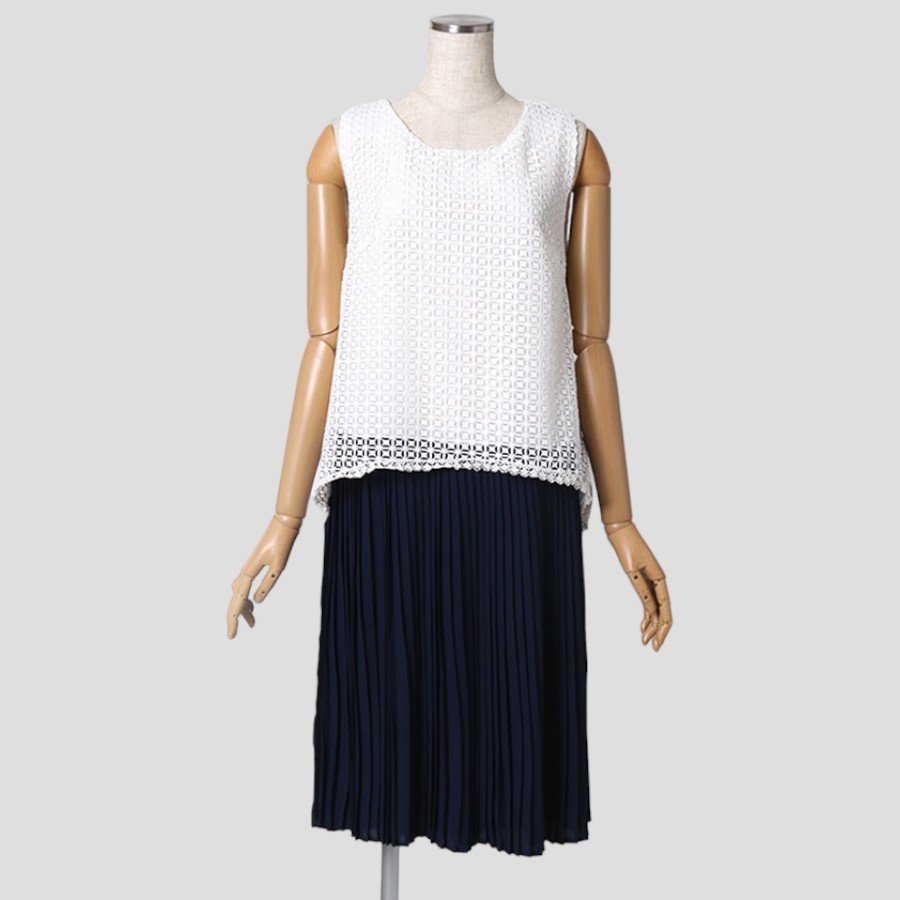 レース×プリーツドッキングワンピース(Mサイズ / オフホワイト / JET SET(ジェットセット))