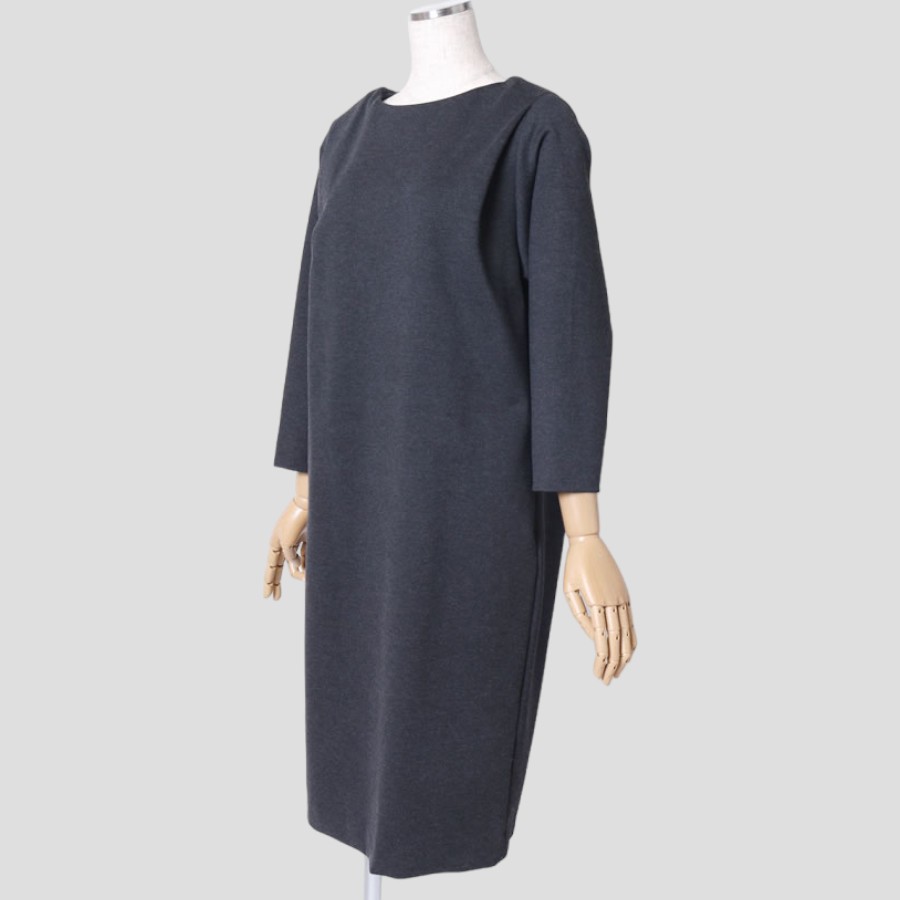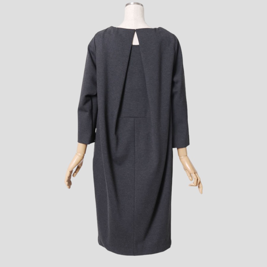 シンプルで、でもバックシルエットが美しく、よくあるファストファッションの無地ワンピースとは違った仕上がりで満足です。少し生地が厚いので、後ろ姿を楽しみたくて一枚で着たい場合は季節が限られてしまいます。