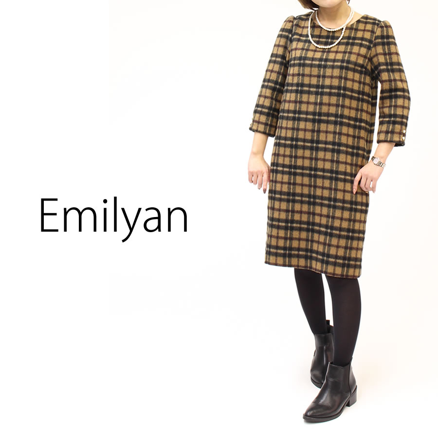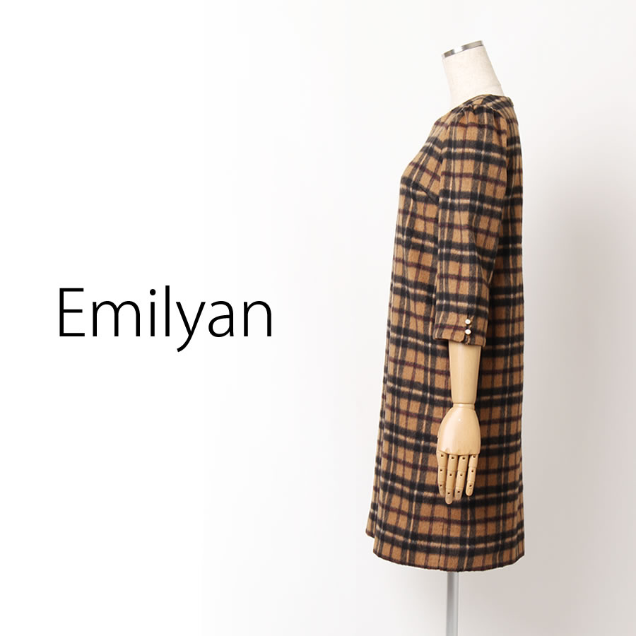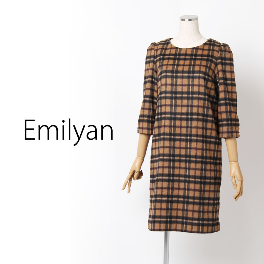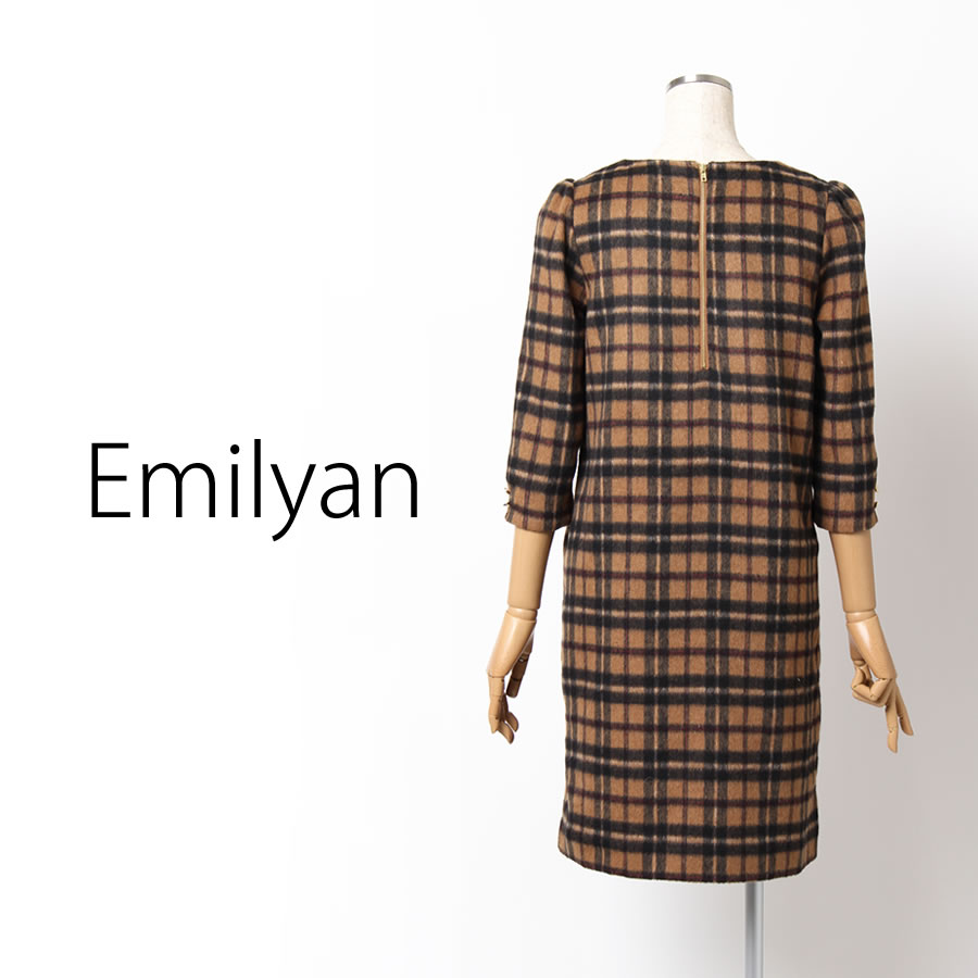 チェック柄 シャギーワンピース(Mサイズ / ブラウン / Emilyan(エミリアン))