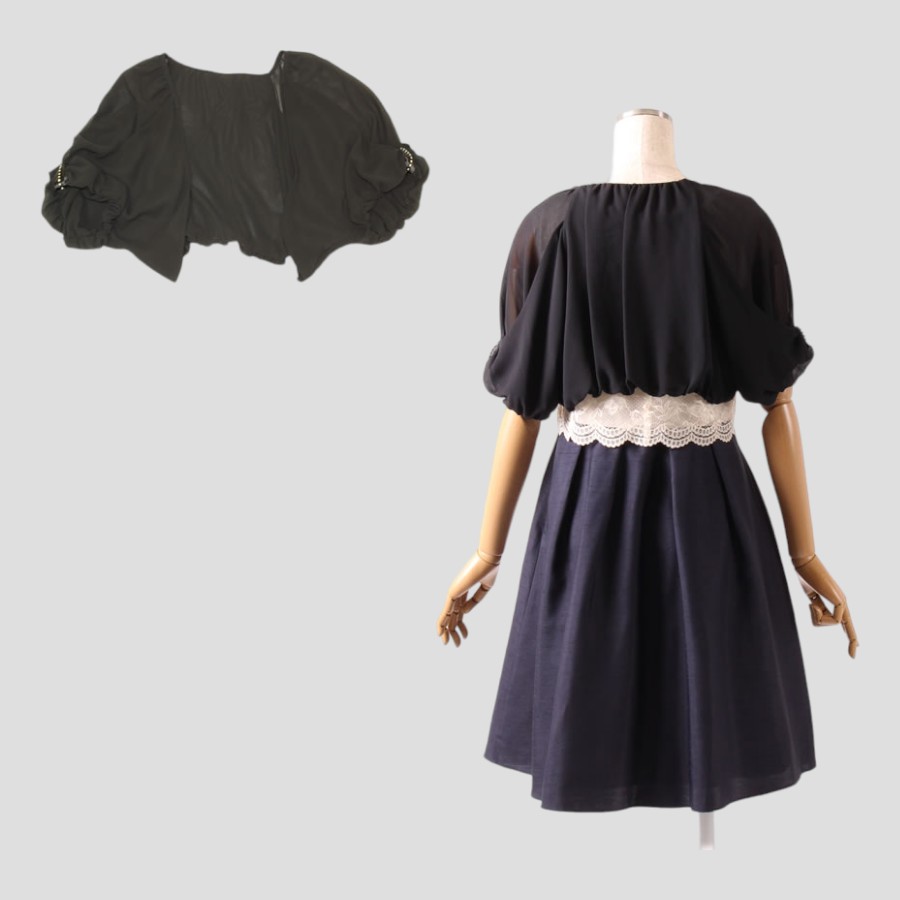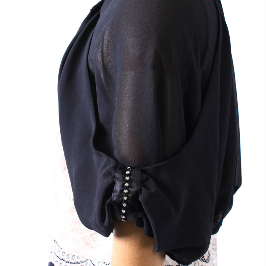 ★スタッフコメント★シフォン生地の透け感のあるボレロです。袖口のビジューがポイントです。