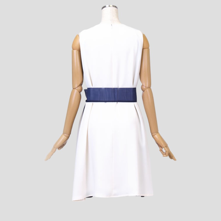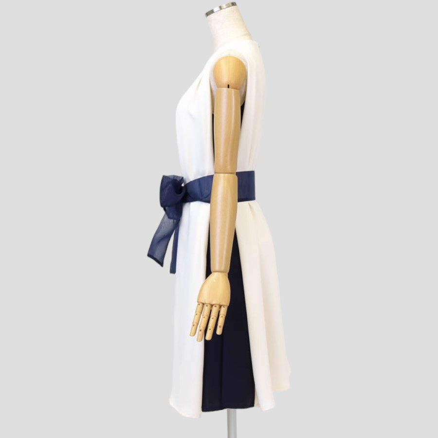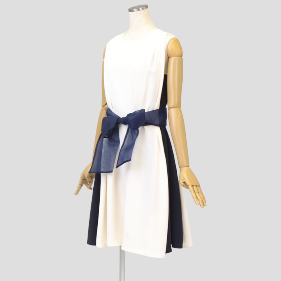 白とサイドのネイビーのコントラストも丈も良かった。シフォンのリボンベルトが若干、持て余し気味になるので、つけないで仕事用として着用。パーティなどだとリボンベルトは可愛いと思います。