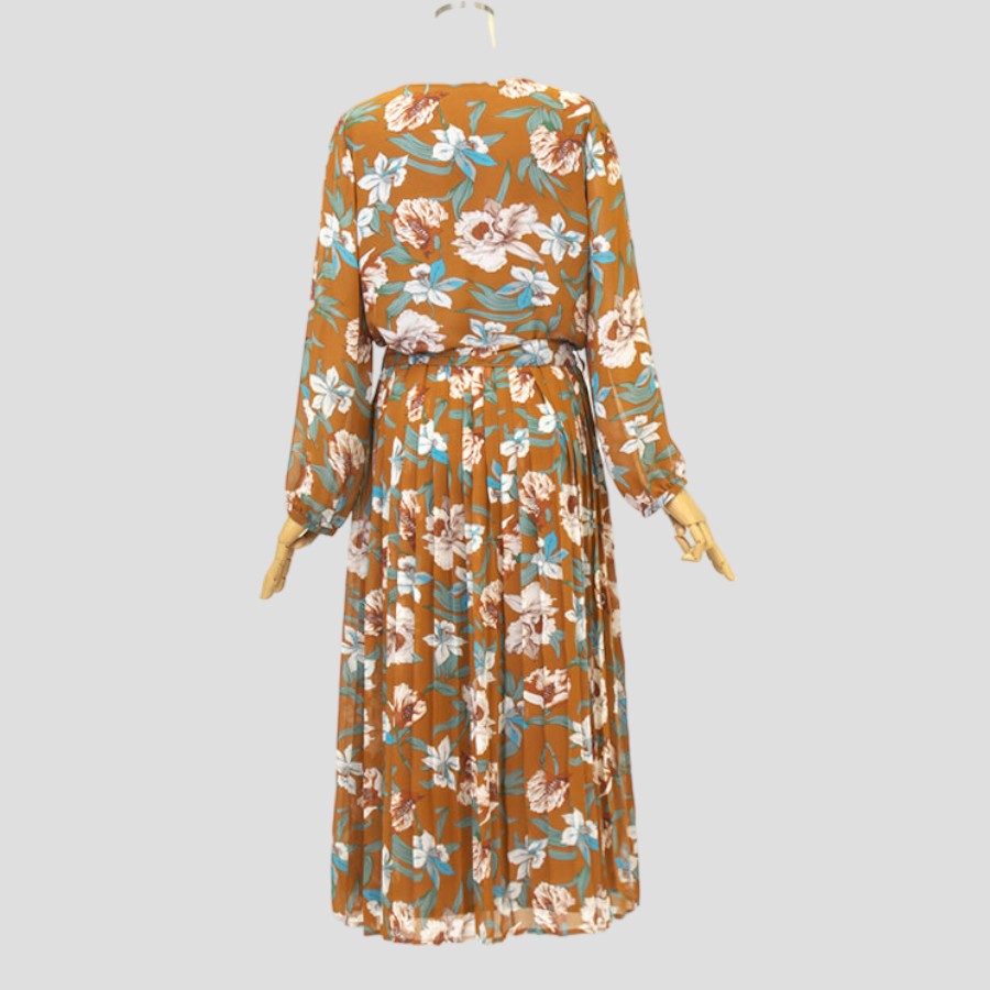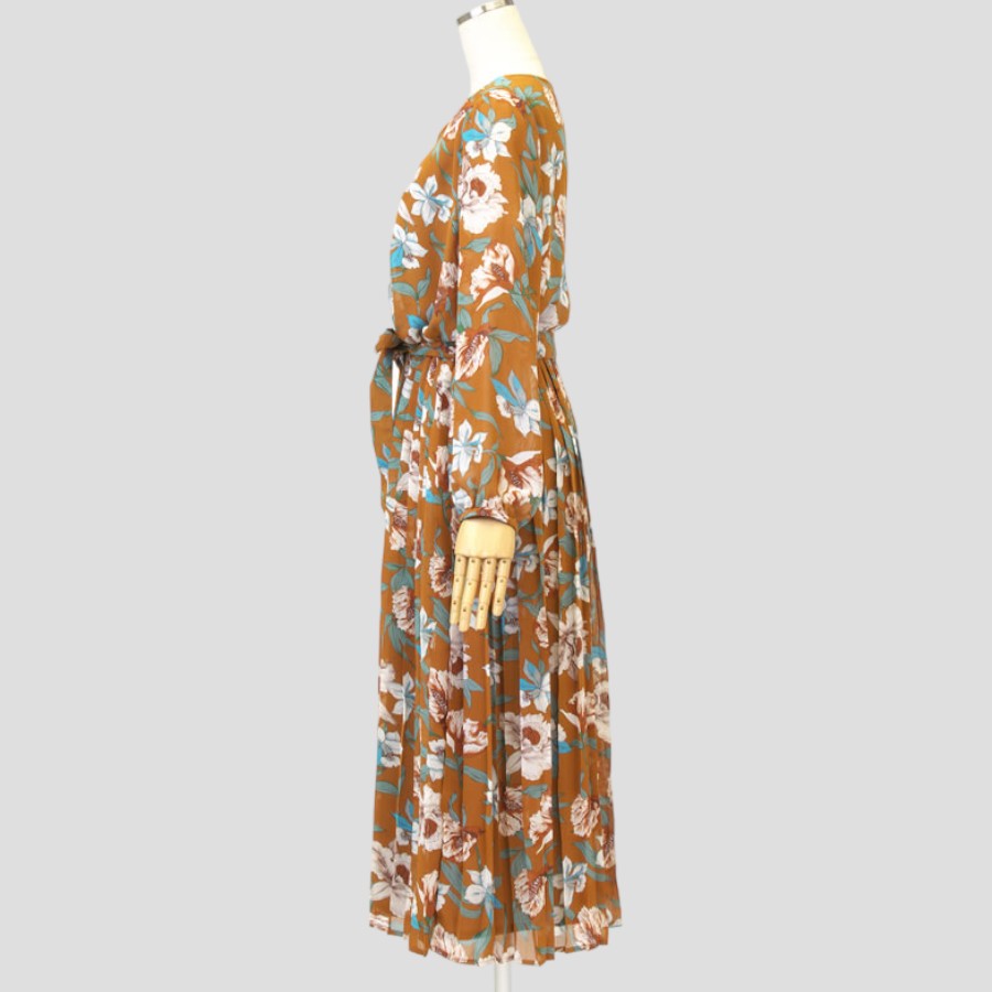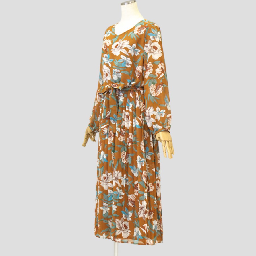 ★スタッフコメント★シックなフラワー柄のクラシカルなワンピースです。柔らかく肌触りの良い生地です。#アナウンサー着用※ロング丈となっておりますので、サイズ詳細をご確認ください。
