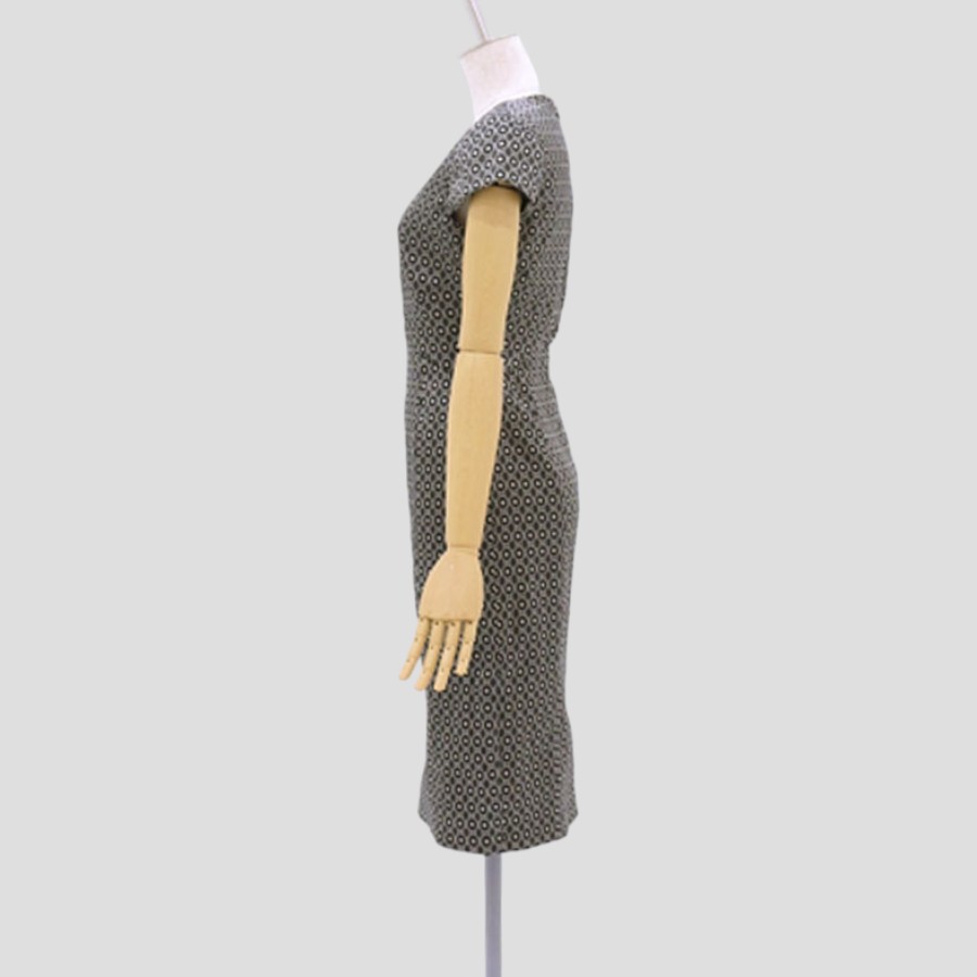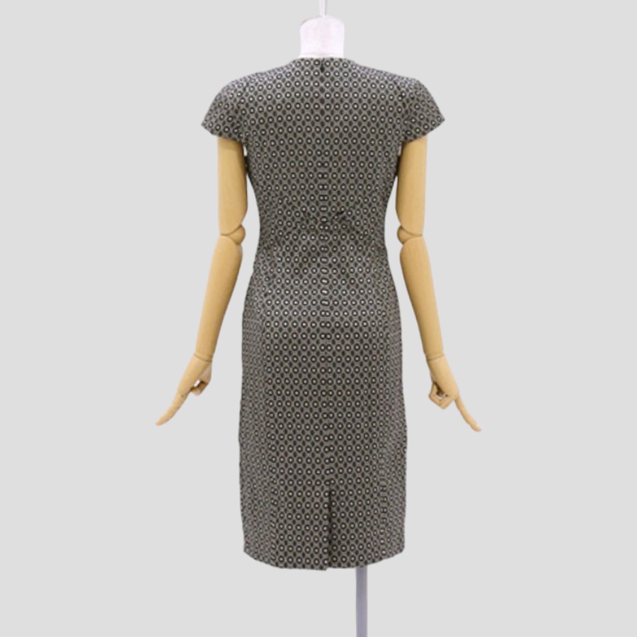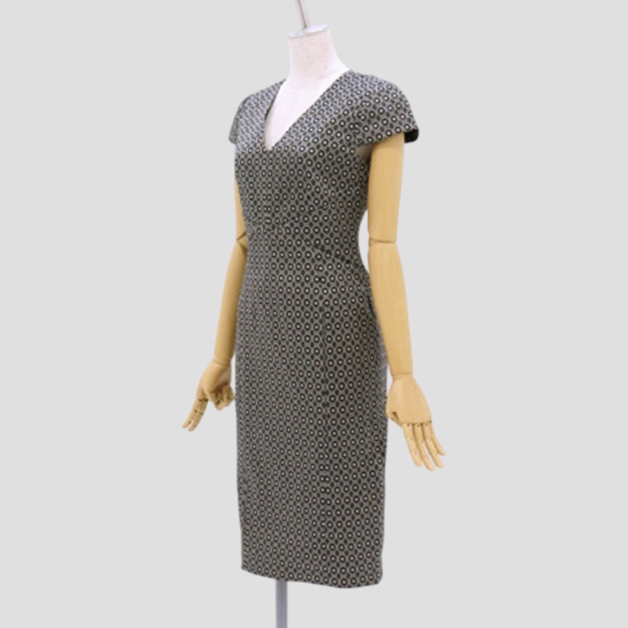 幾何学柄 Vネック ワンピース(L-XLサイズ / シルバー・ブラック / BROOKS BROTHERS(ブルックス ブラザーズ))