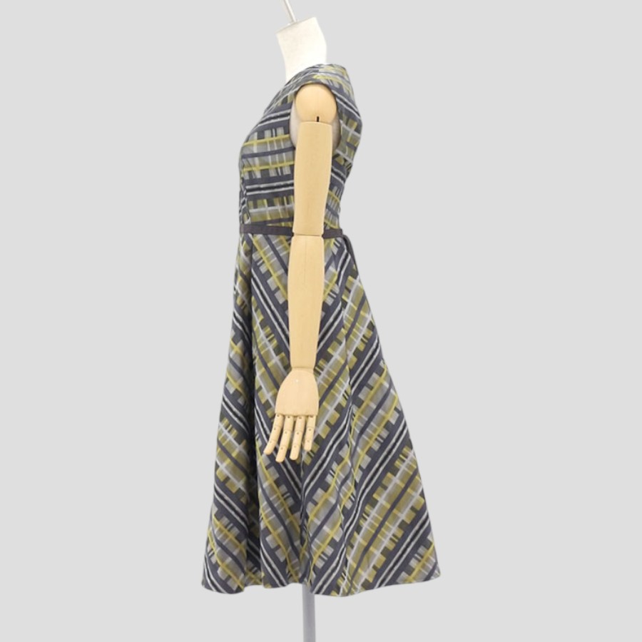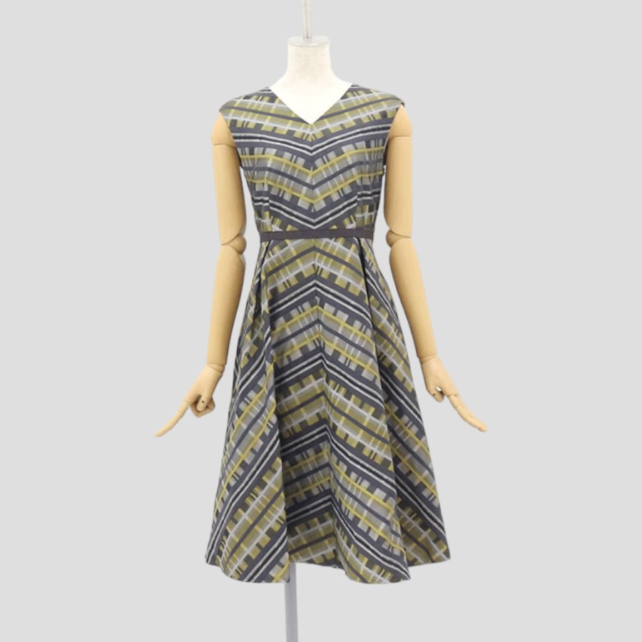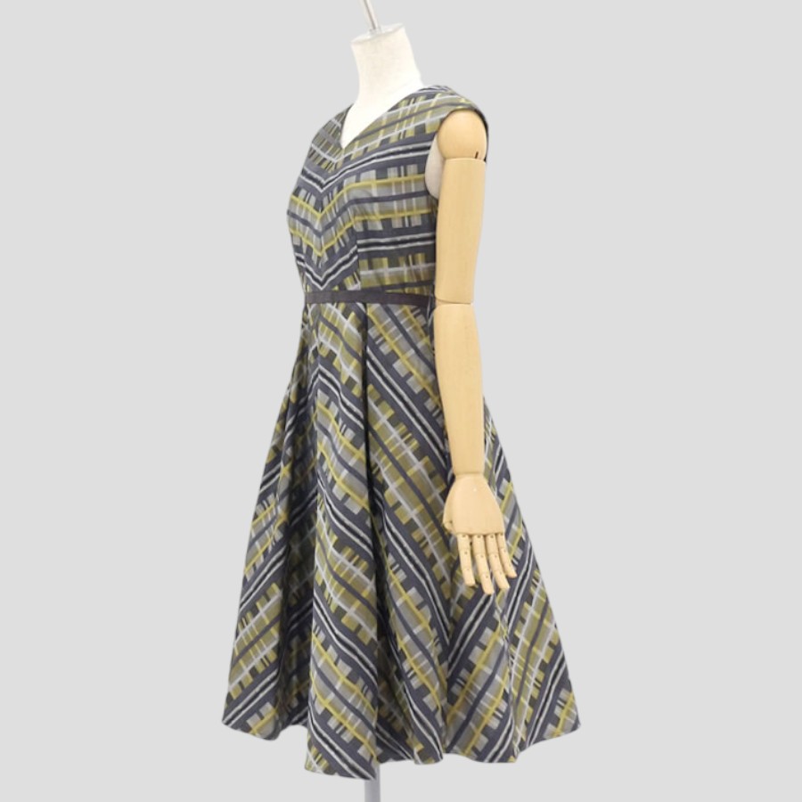 ラメ糸も使用したチェック柄のジャガードドレス。