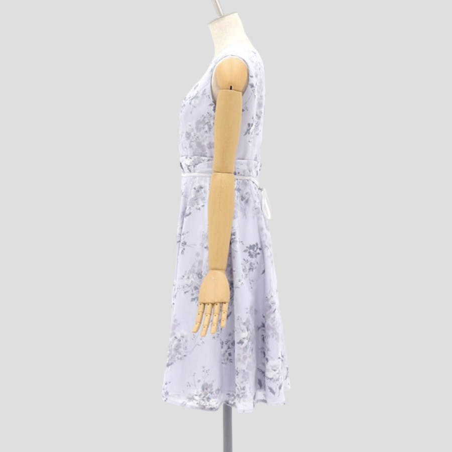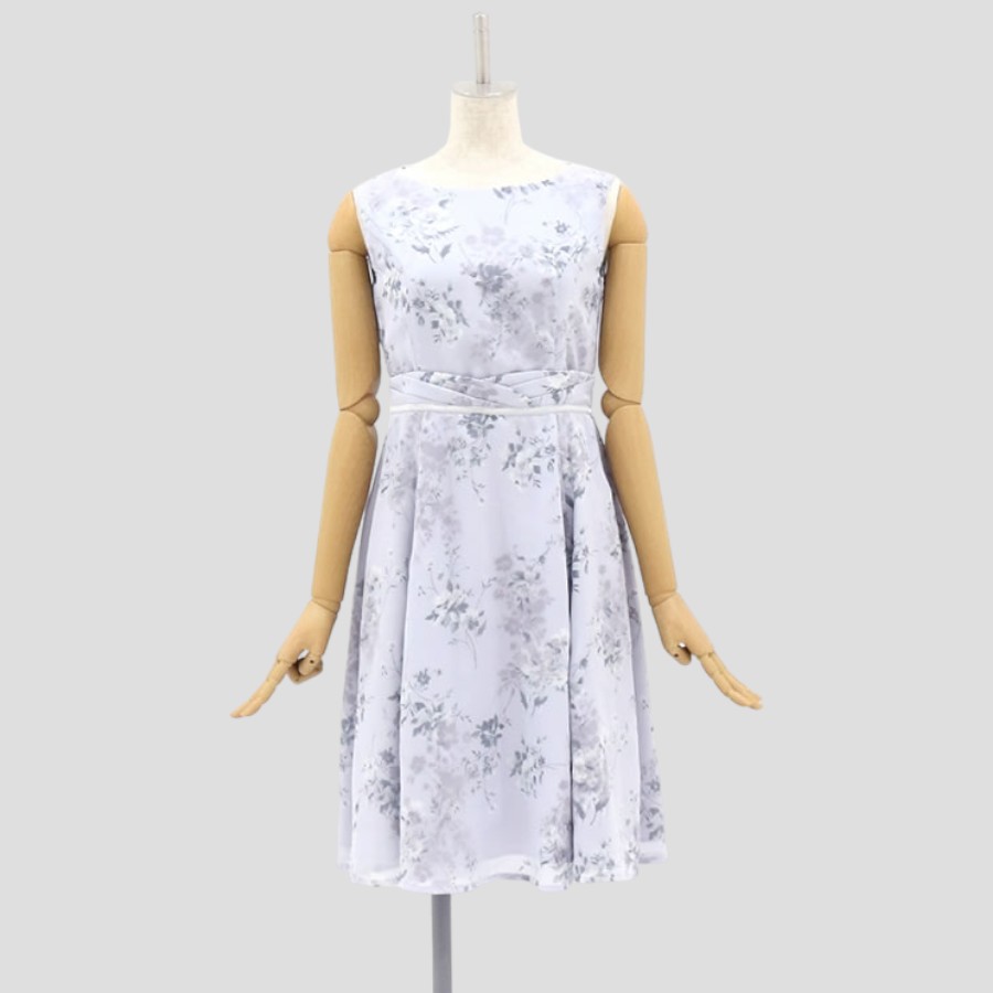 フロッキープリント 花柄 ワンピース(Mサイズ / ライトグレー / Dear Princess(ディアプリンセス))