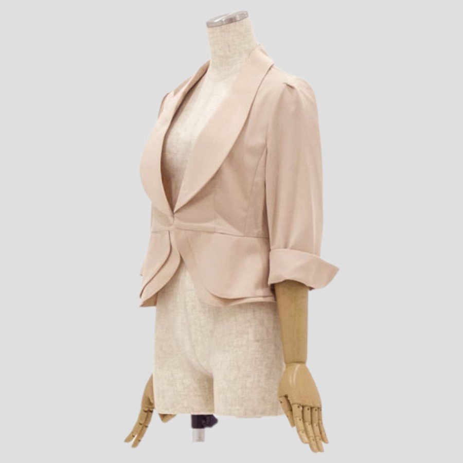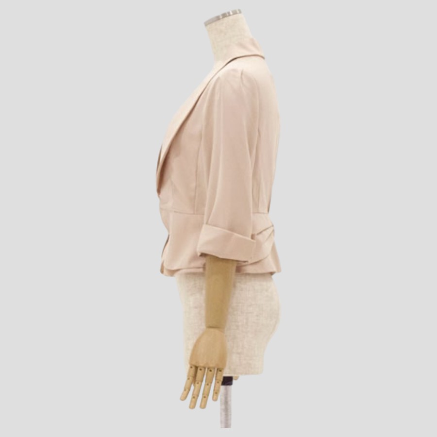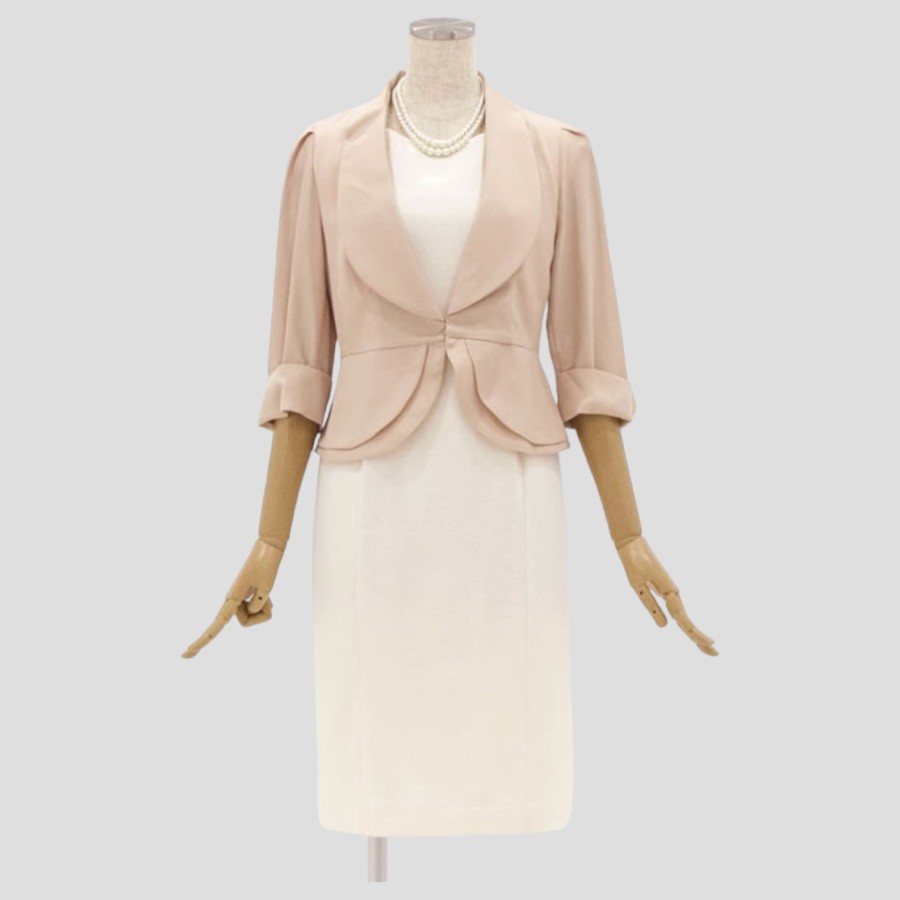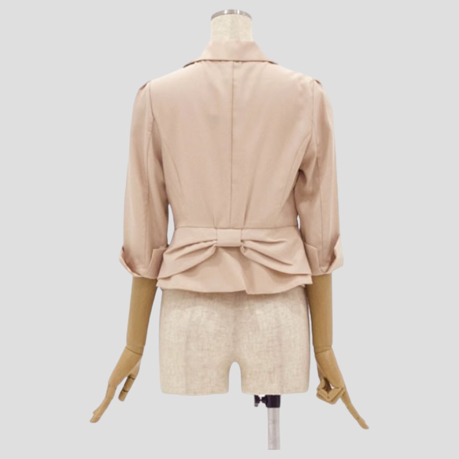★スタッフコメント★"高めに切り替えしたぺプラムが視覚的に脚を長く見せ、より女性らしいラインを強調させてくれる薄手のジャケット風ボレロ。パーティーシーンにはもちろん、オフィススタイルとしても、きちんと感のある大人可愛いを演出してくれる1着です。Lサイズでもコンパクトなおつくりとなっておりますので、採寸表をお確かめ下さいませ。 ※サイズ表記を「L」→「M-L」に変更しました"