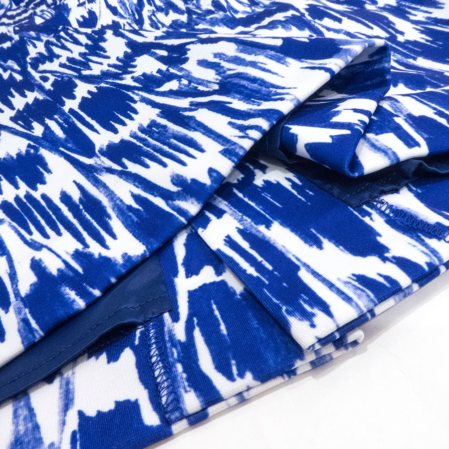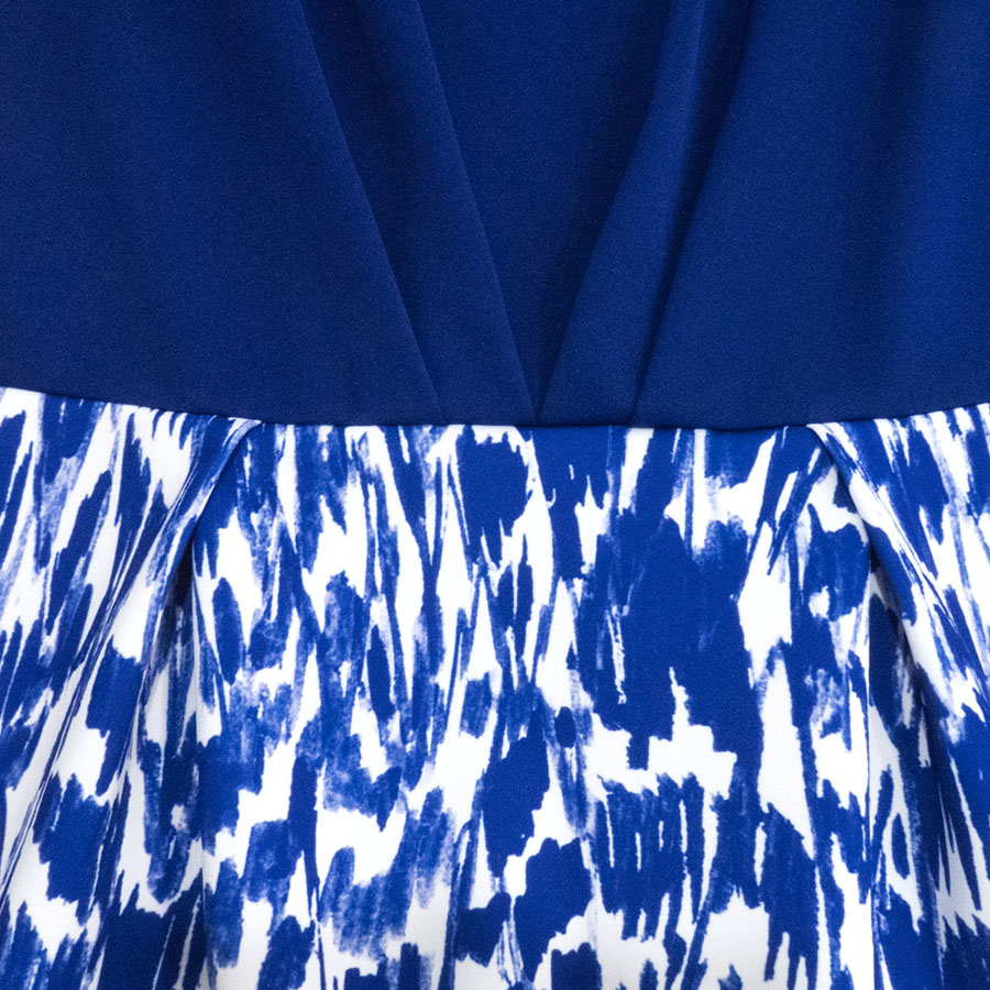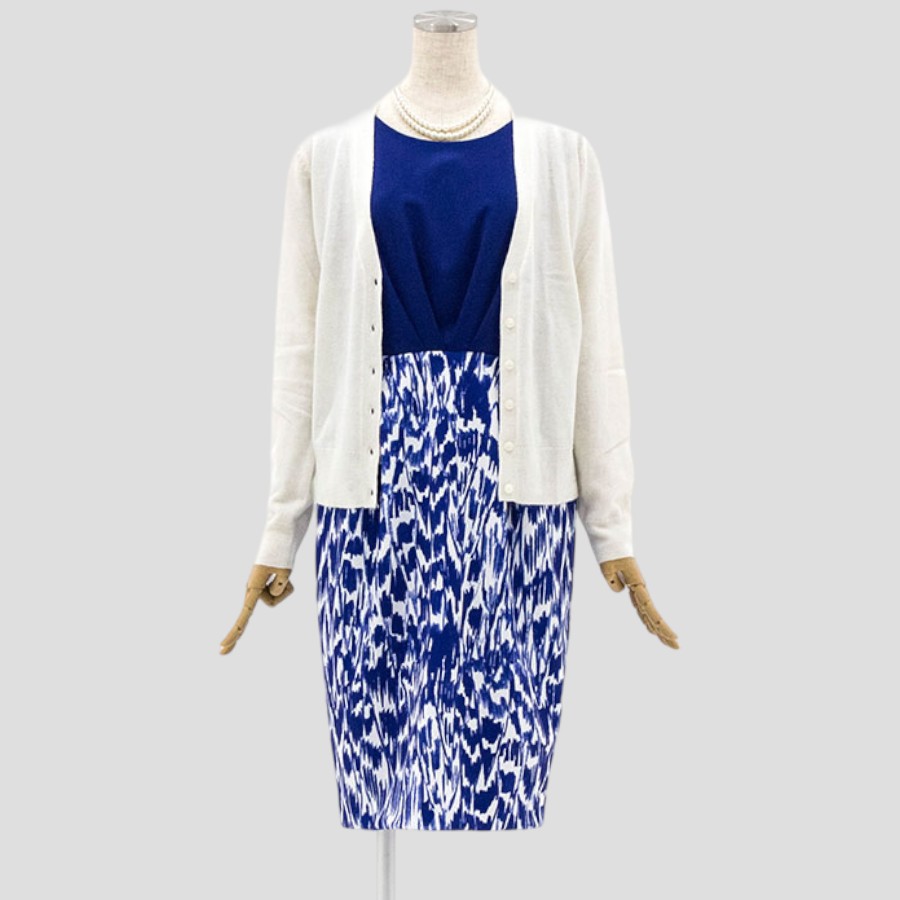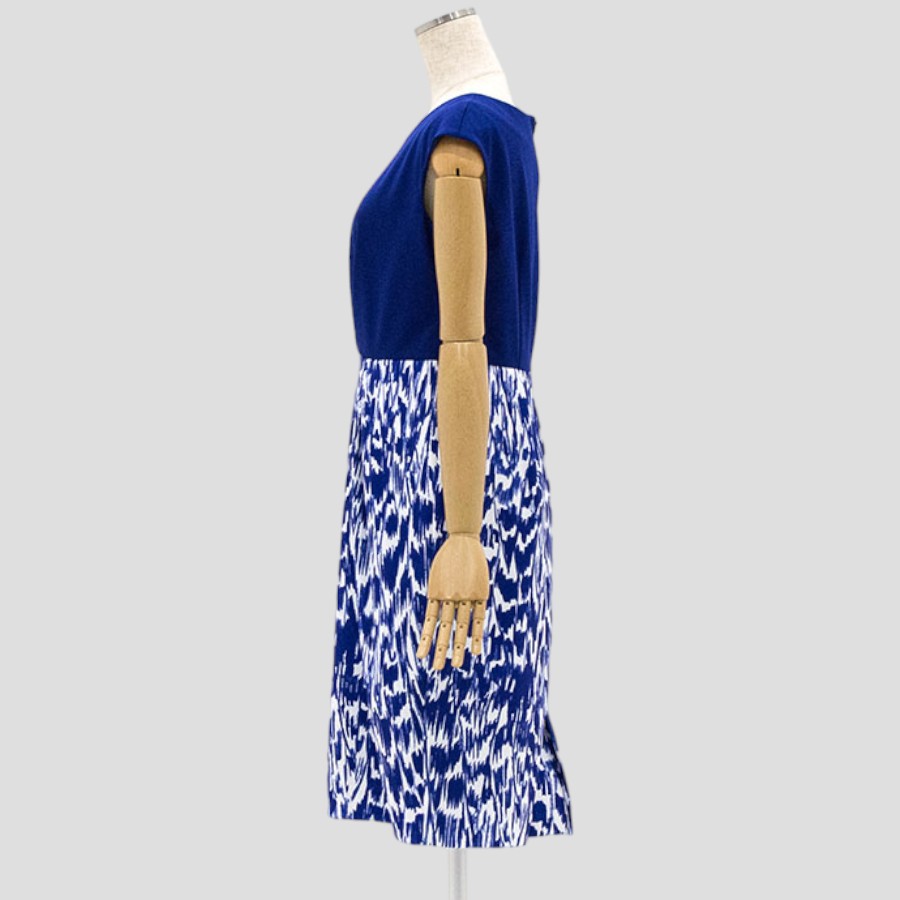 グラフィカルなピーコック柄のスカートが映える人気のドッキングワンピース。