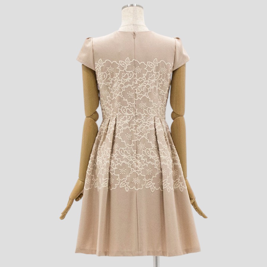 フィット&フレアのレディなシルエットが魅力的な1着。