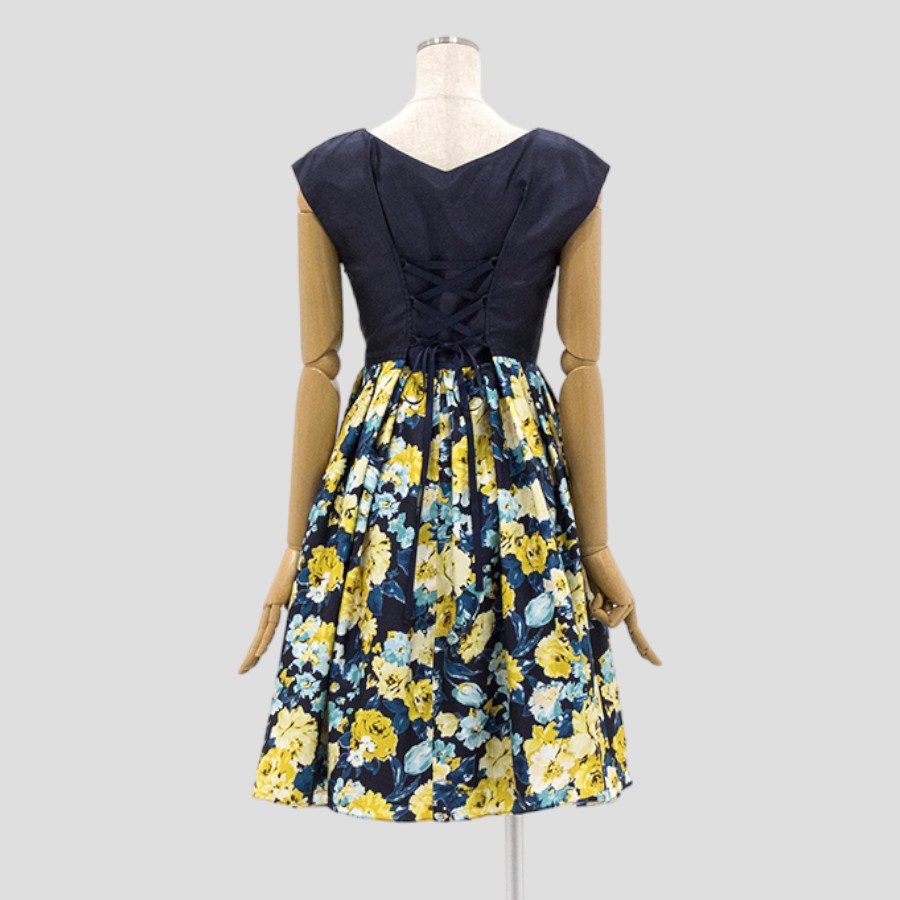 バック リボン 花柄 フレア ワンピース(Mサイズ / ネイビー / Sweet As(スウィートアズ)) [付属品 1点:バックリボン]