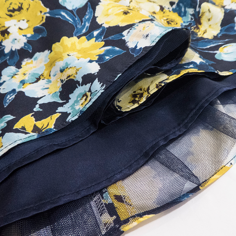 花柄のフレアシルエットとスカート部分のチュールがレディライクな印象のワンピース。