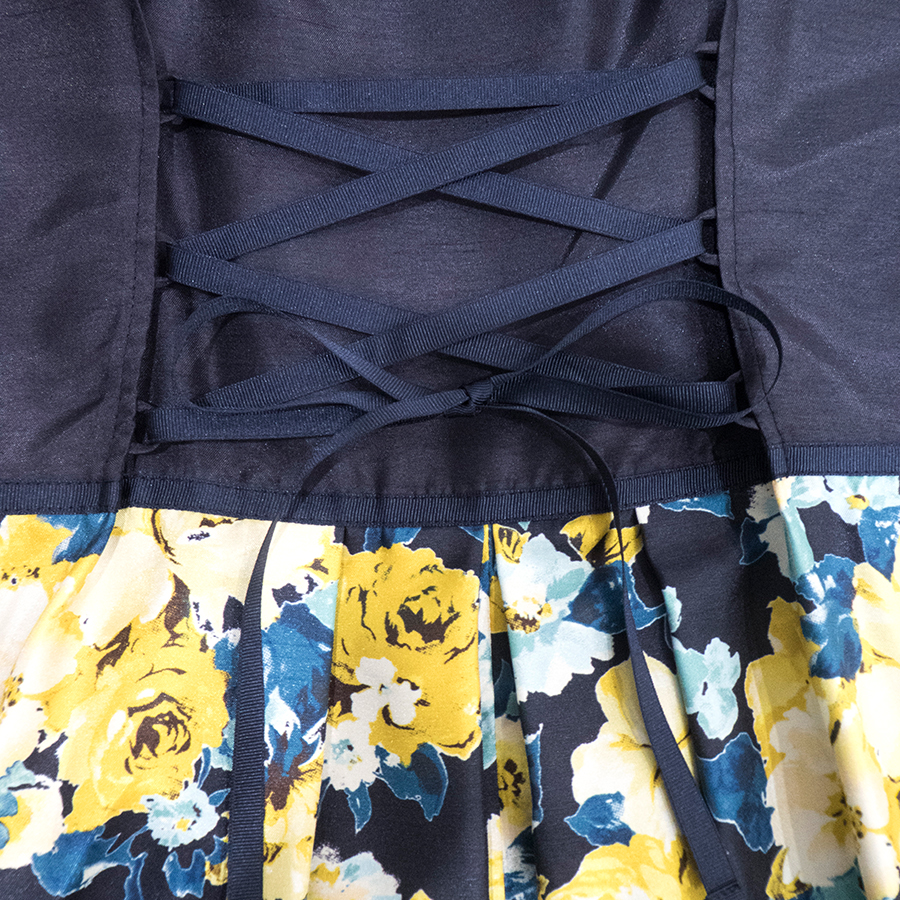 背中のリボンの絞り具合でラインに変化を出すこともできます。 -
