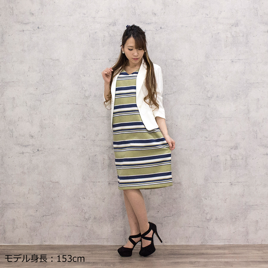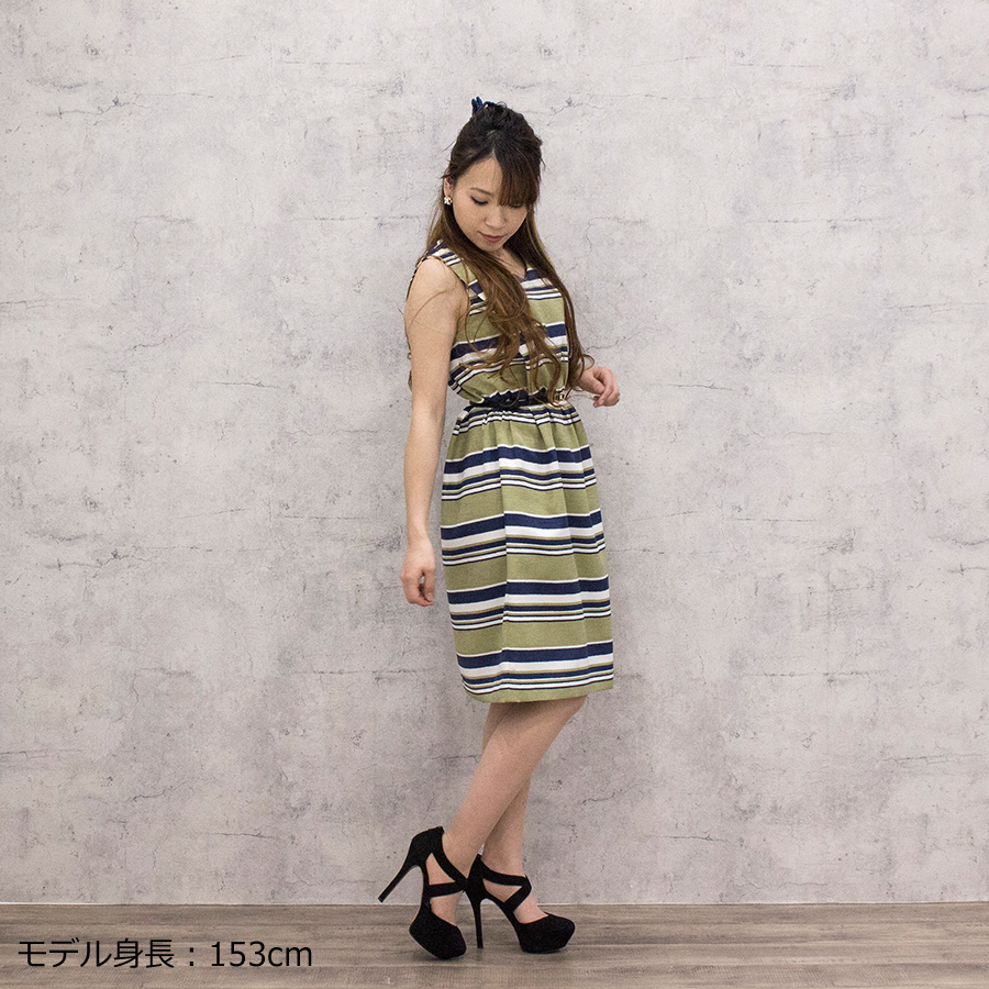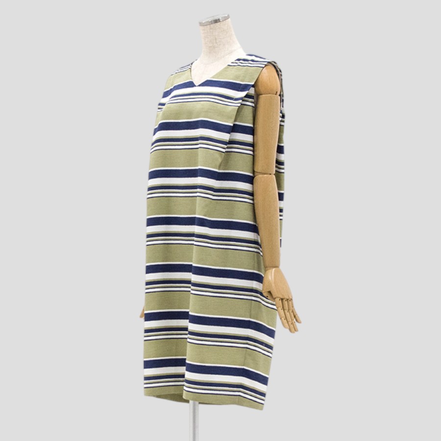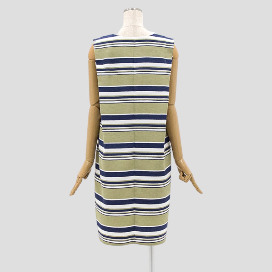ボーダー ノースリーブ Iライン ワンピース(Mサイズ / グリーン / ENRICO DOMANI(エンリコドマーニ))