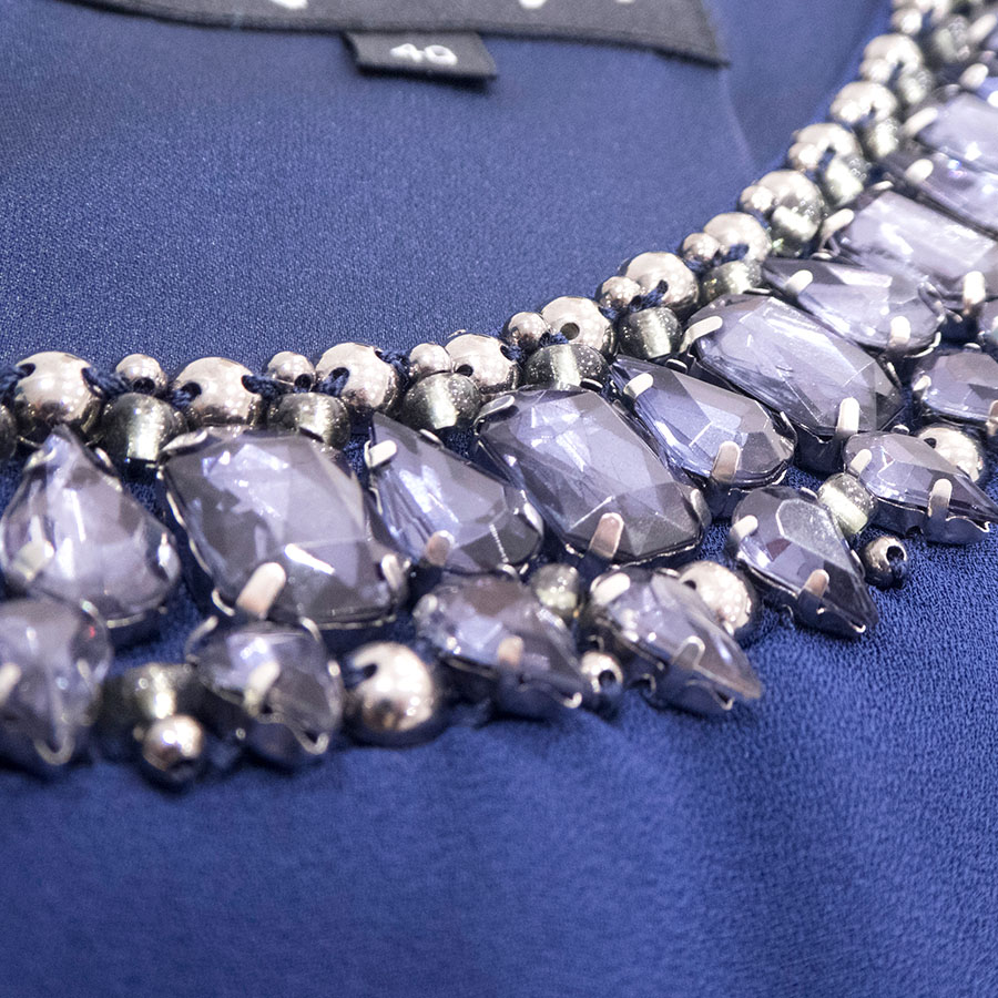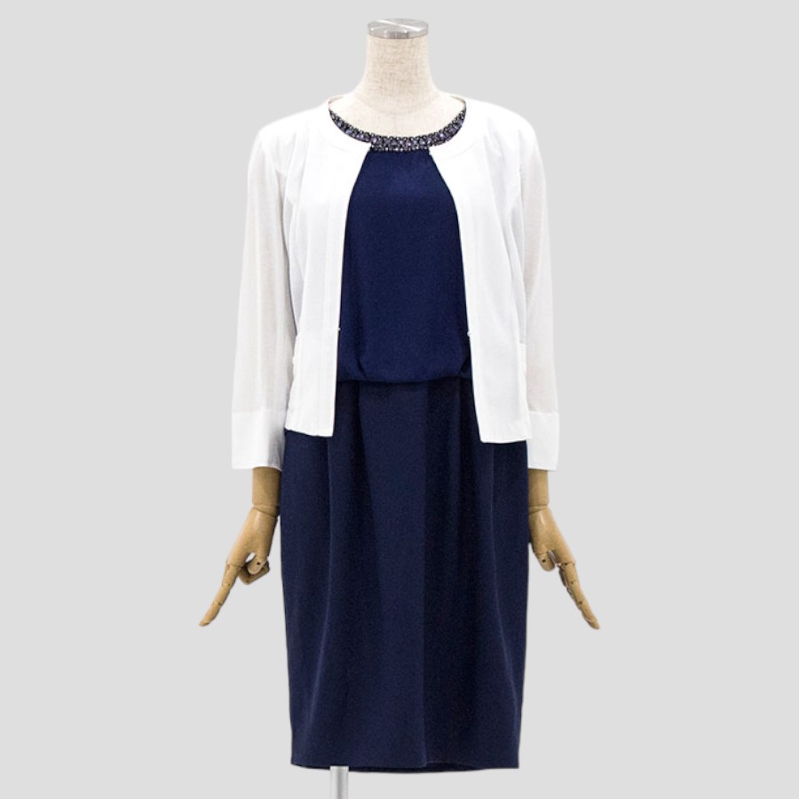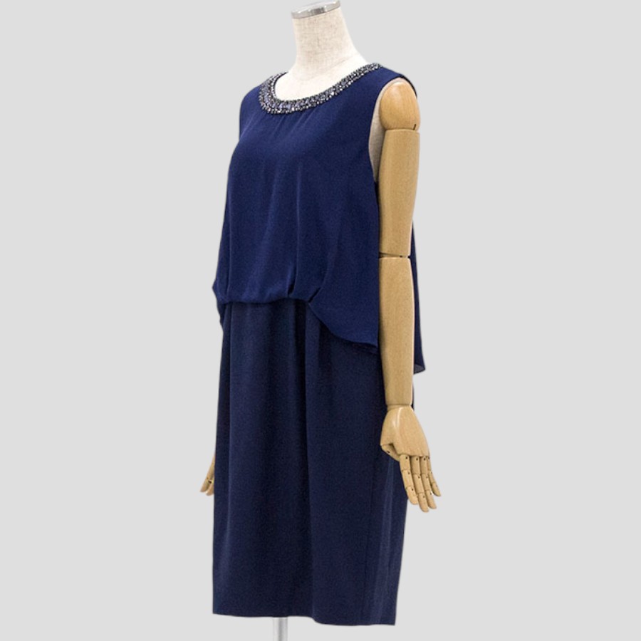 夏の友だちの結婚式に利用。何着ていったらいいかわからなかったけど、ゲストもネイビーの服を着た人が多く、会場にうまく溶け込めた。鎖骨のキラキラが華やかでおすすめ。