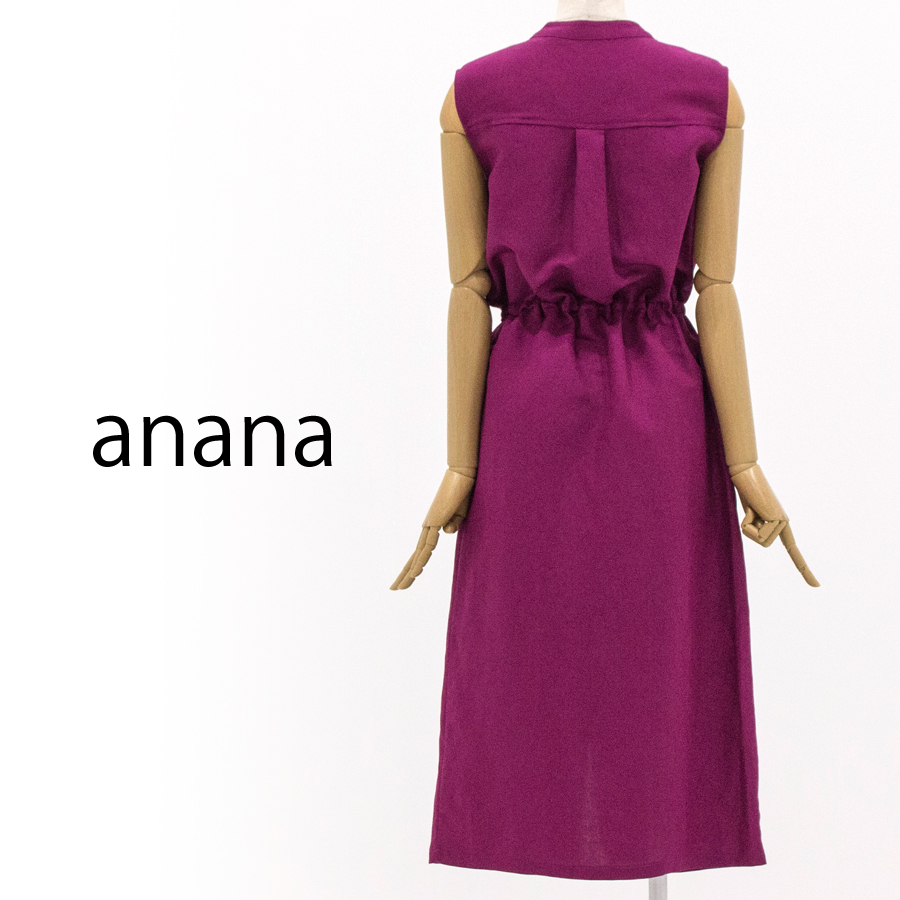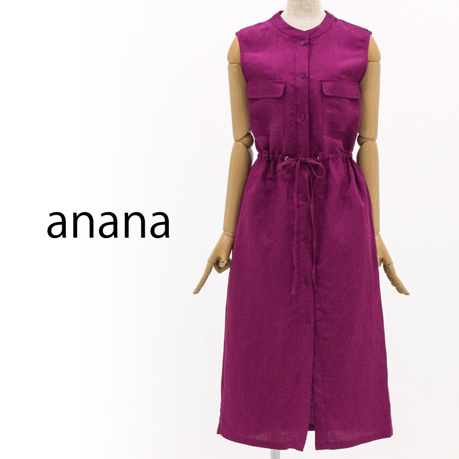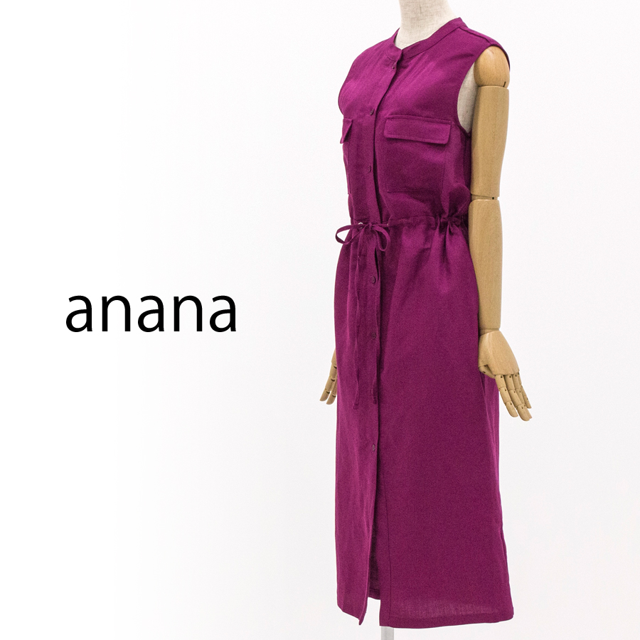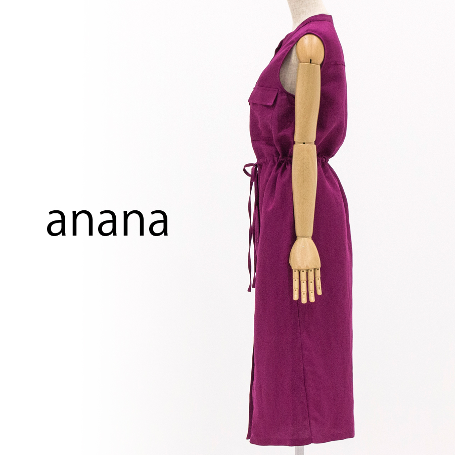 ポケット付 ノースリーブ リネン ワンピース(Mサイズ / ラズベリー / anana(アナナ)) [付属品 1点:中通し紐]