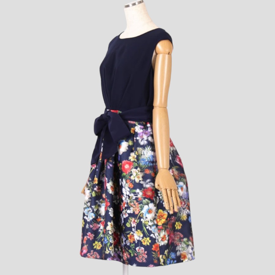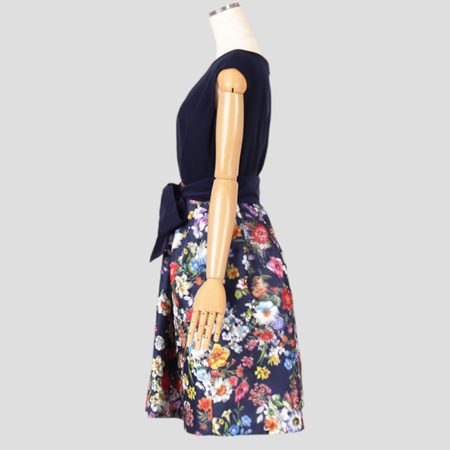 記念日旅行に着用しました。157センチで膝少し下の着用感でした。花柄とふんわりとしたスカートがとても可愛いです。ガーリーなデザインですが、落ち着いたネイビーで大人の女性も素敵に着こなせると思います。