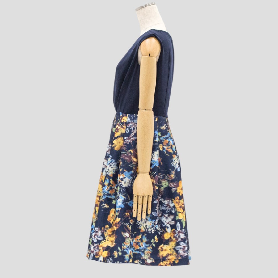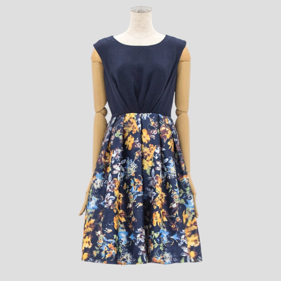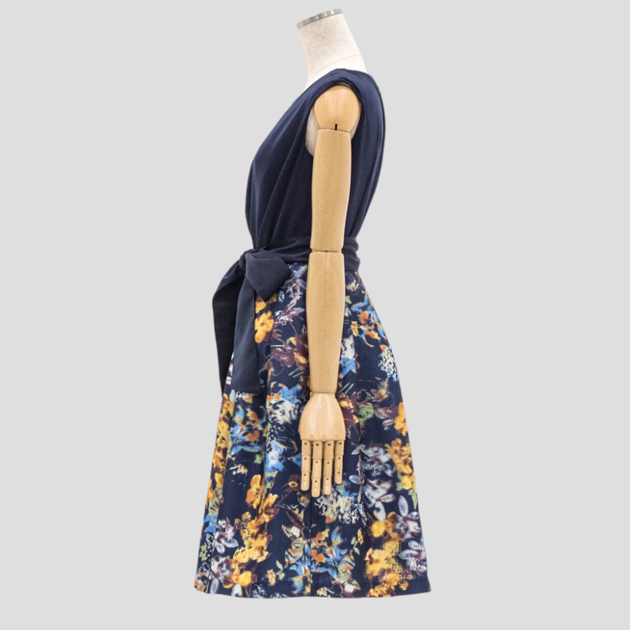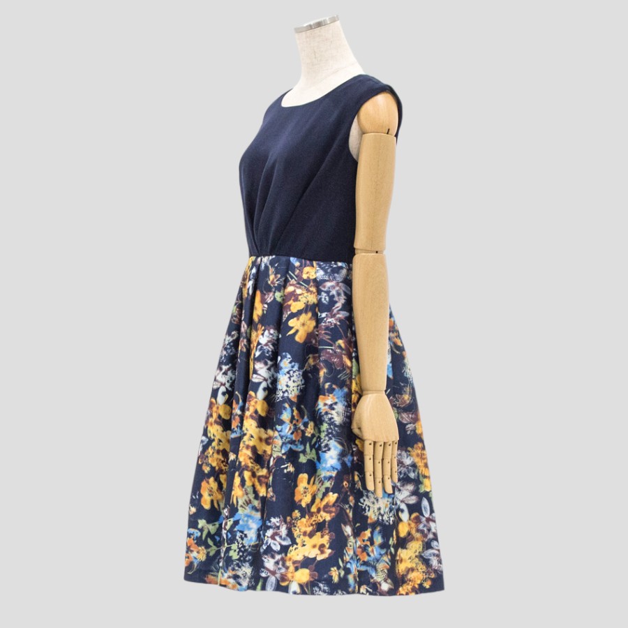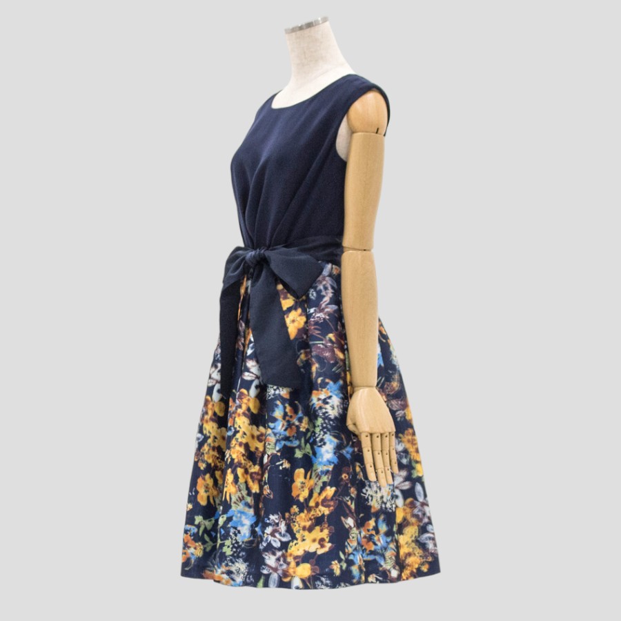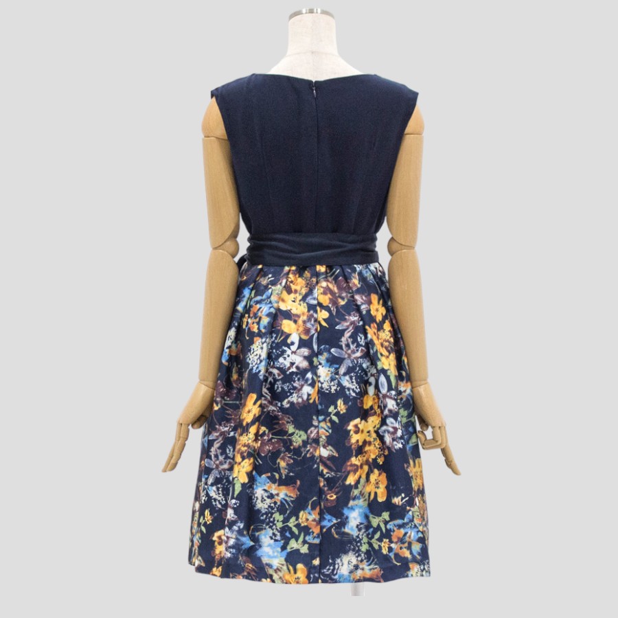 3Dプリント 花柄ワンピース(Mサイズ / ダークブルー / Dear Princess(ディアプリンセス)) [付属品 1点:ウエストリボン]