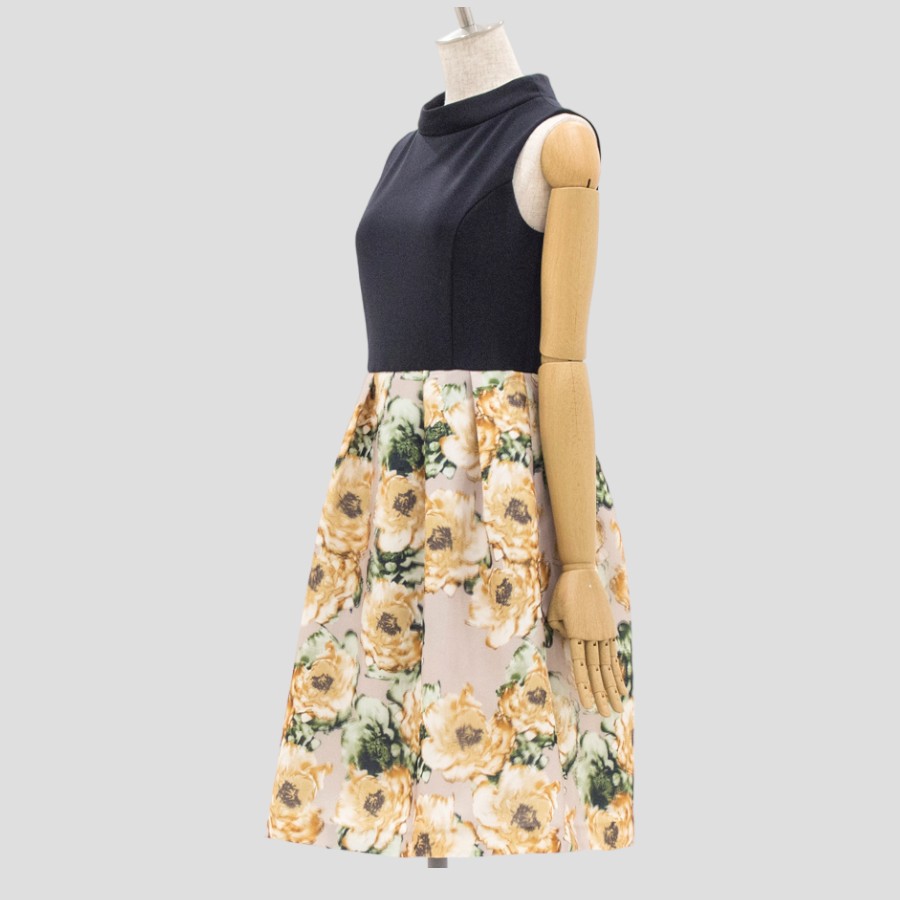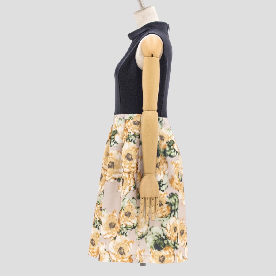 これはめちゃくちゃ可愛いです!!花柄のプリントの色合いも珍しい。黄色なのにすごい落ち着いてて上品です。ボトルネックで上半身と下半身の素材感も結構違って面白い