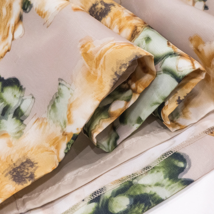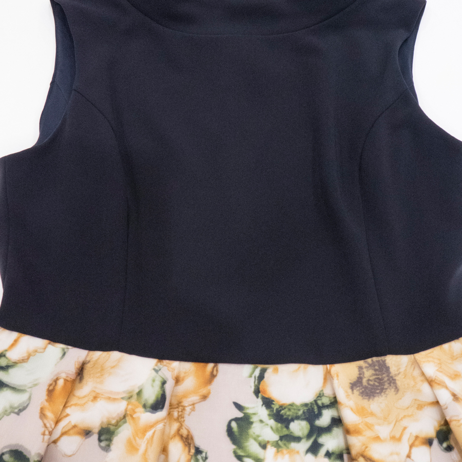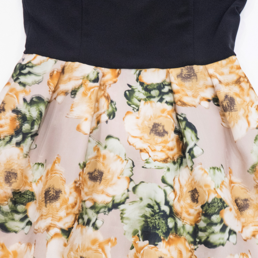 3Dプリント生地のワンピース。大きなフラワープリントが目を惹きます。