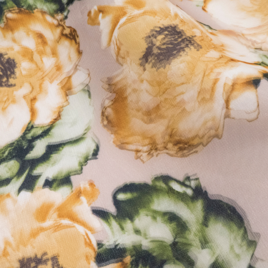 上のオーガンジー生地が重なることで立体的に見え、華やかな印象です。