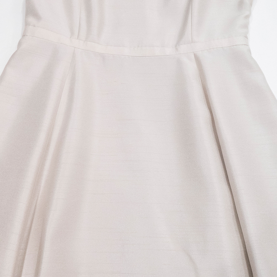 生地がとにかく綺麗な一着。デザインは落ち着いているので、改まった席や目上の方との会食などは好印象となるワンピ