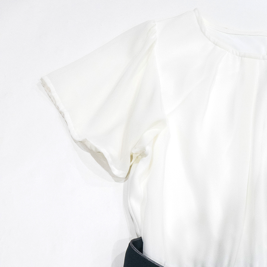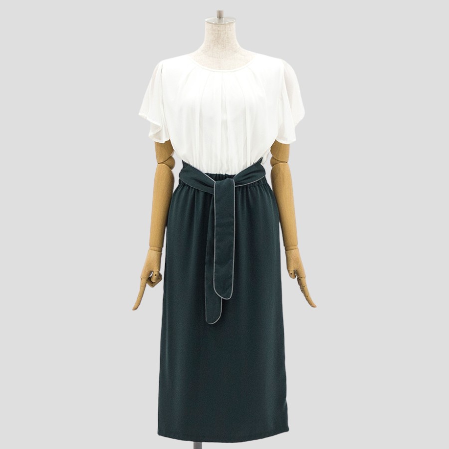 ★スタッフコメント★Iラインシルエットで、長めのスカート丈が上品なワンピース。程よい長さとふんわりした素材の袖が気になる二の腕をカバー。また、ジャケットなどを羽織ってももたつかずに着ていただけます。裏地はブラウス部分についております。#アナウンサー着用