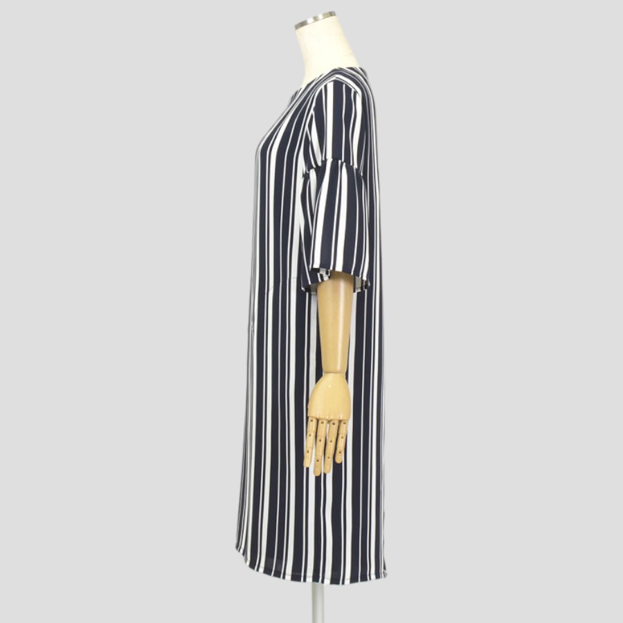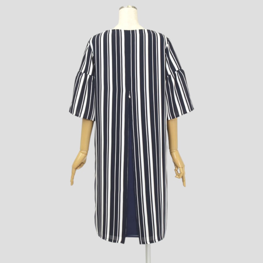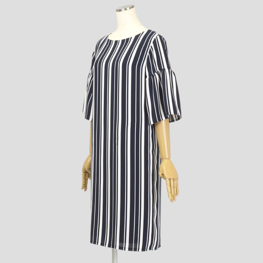 ランダムストライプワンピース(Mサイズ / ダークネイビー×白 / B DONNA(ビドンナ))