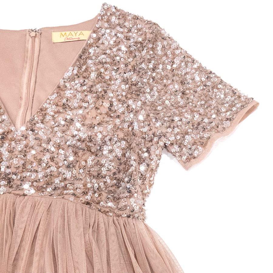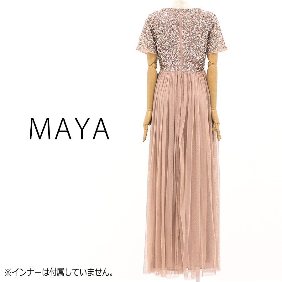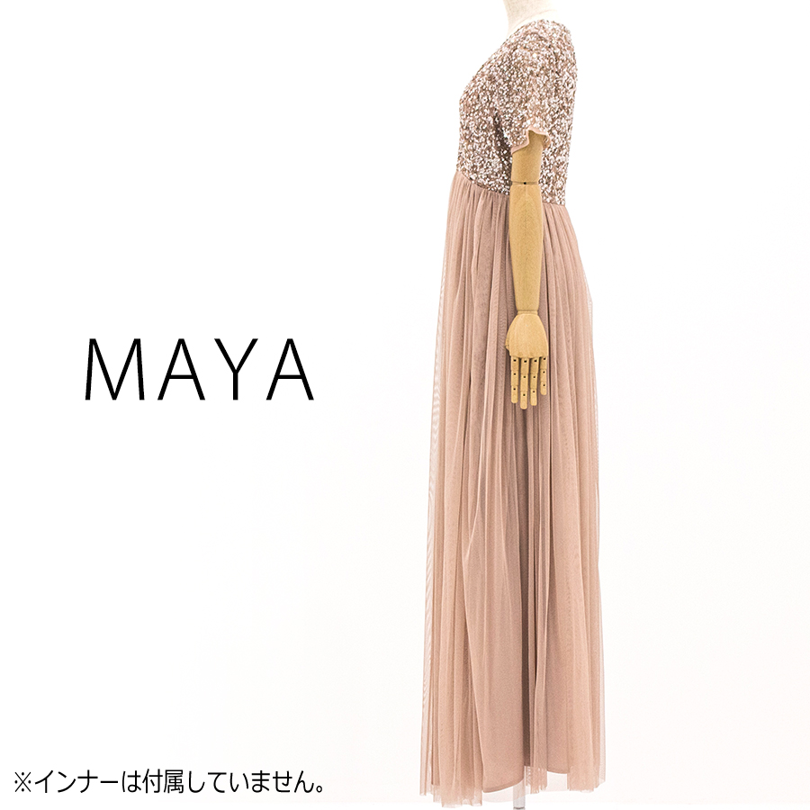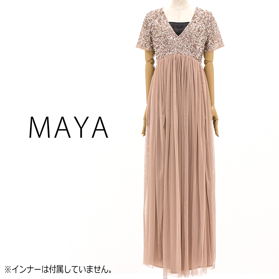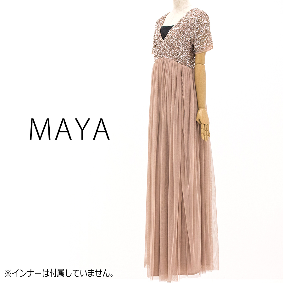 マタニティ Vネックロングチュールドレス(Mサイズ / Taupe blush / MAYA(マヤ))