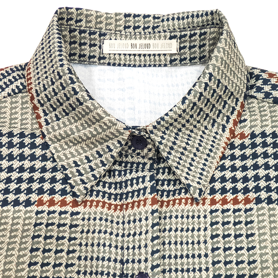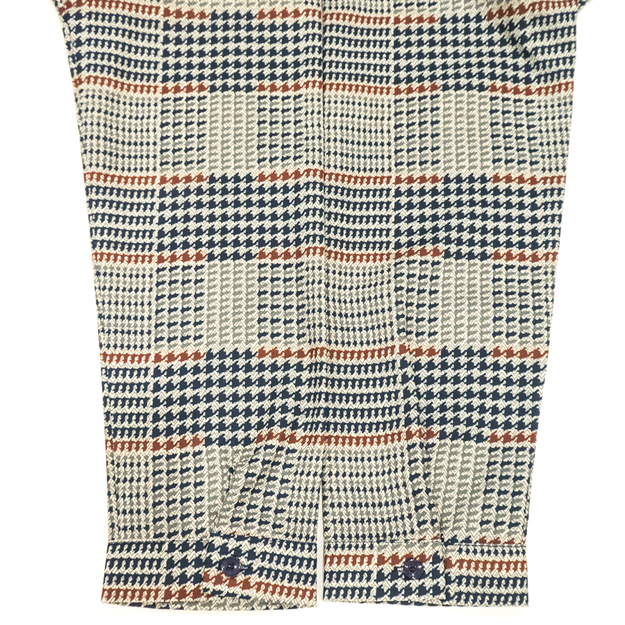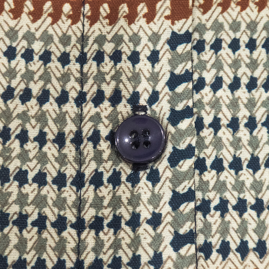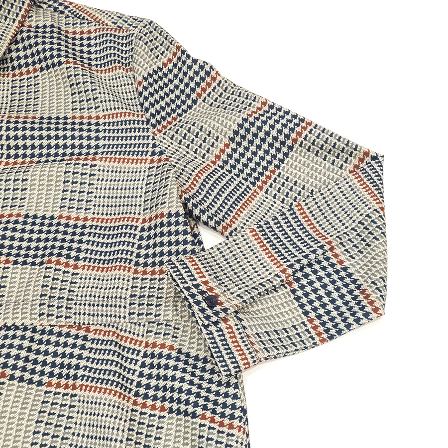 ★スタッフコメント★千鳥柄がボーダーのようににデザインされたワンピース。ボタンを多めに外して抜け感のあるシルエットで着ていただくのがおススメです。アシンメトリーな裾のデザインは動くたびにふんわり広がり、大人レトロな雰囲気です。ブーツやスニーカーなどと合わせていただいても◎。また、前のボタンを全て開けていただければ、羽織としてもお使いいただけます。※一番下のボタンの位置が脚の付け根辺りとなりますので、レギンスなどのアイテムと合わせていただくのがおすすめです。
