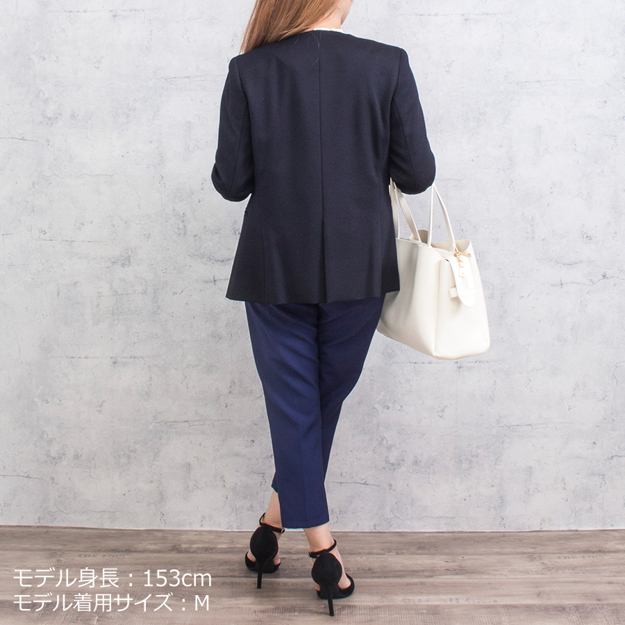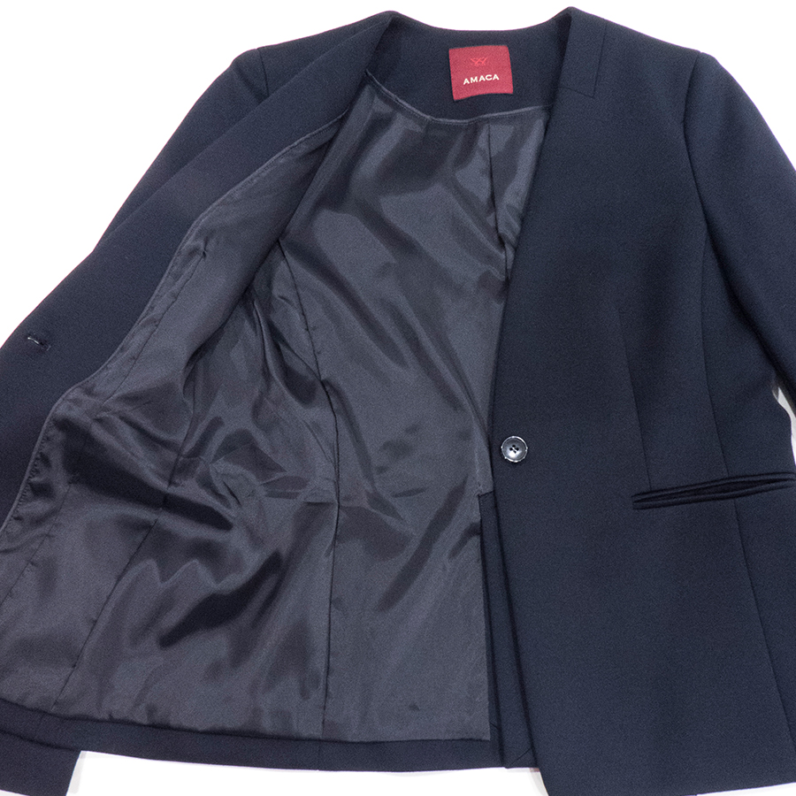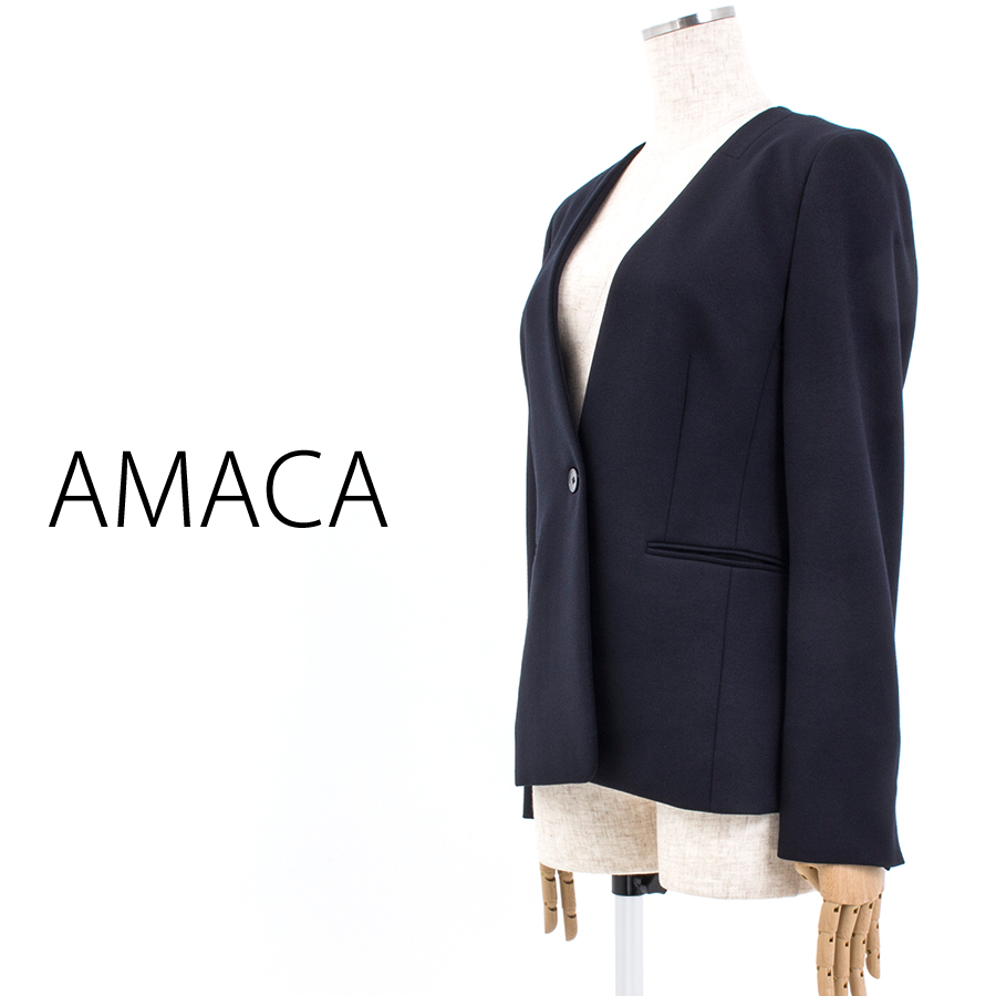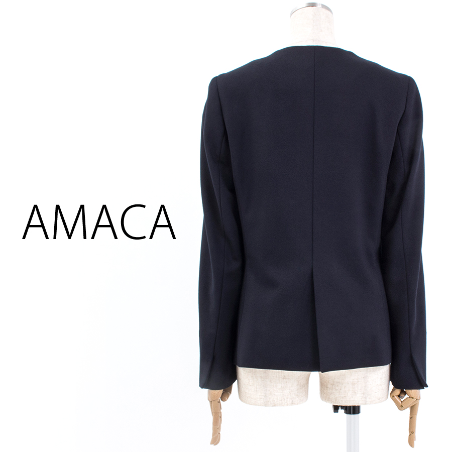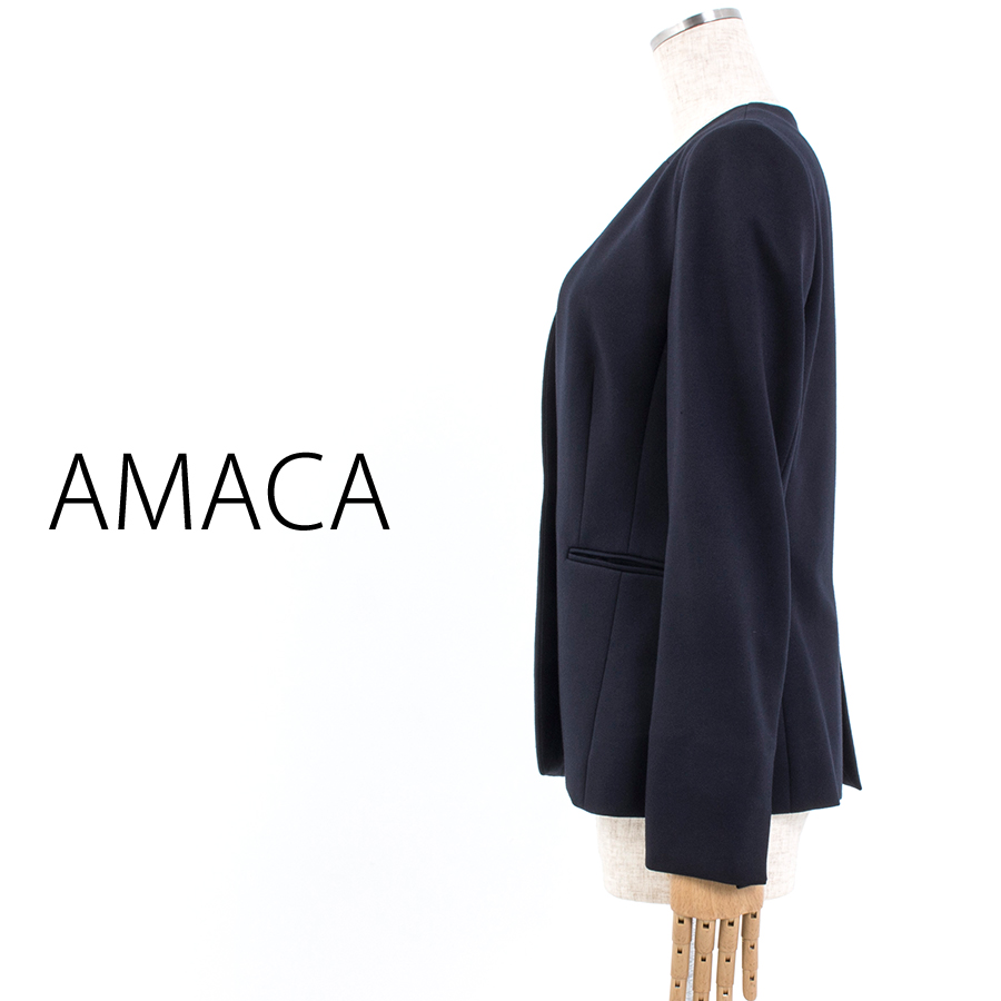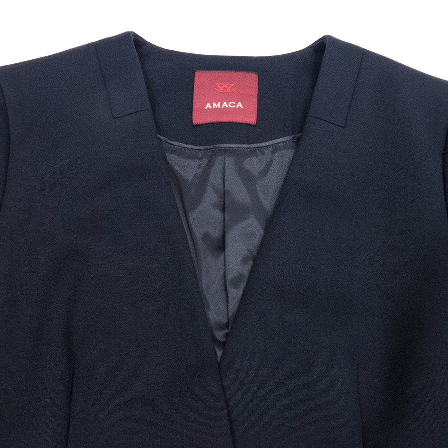 ウォッシャブルミラノジャージーノーカラージャケット(Lサイズ / ブラックネイビー / AMACA(アマカ))