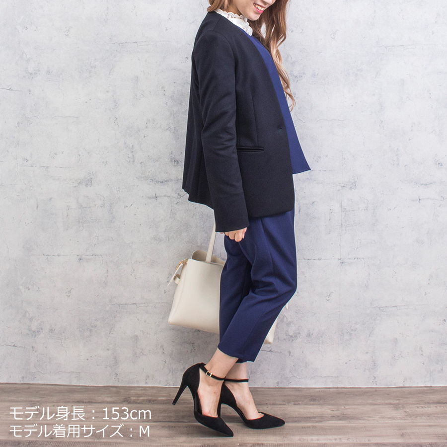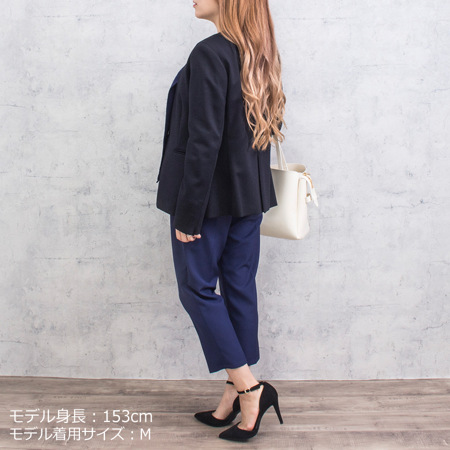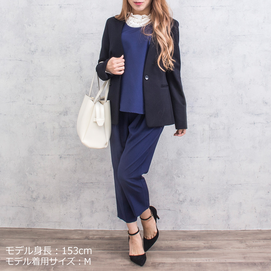 スッキリとしたVネックのノーカラーはオフィスシーンや、食事会、デイリーでカッコよく決めたい時など幅広いシーンでご着用できます。