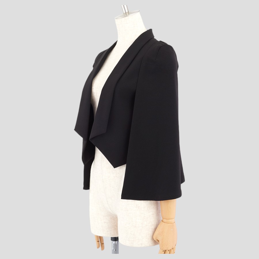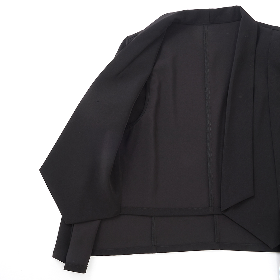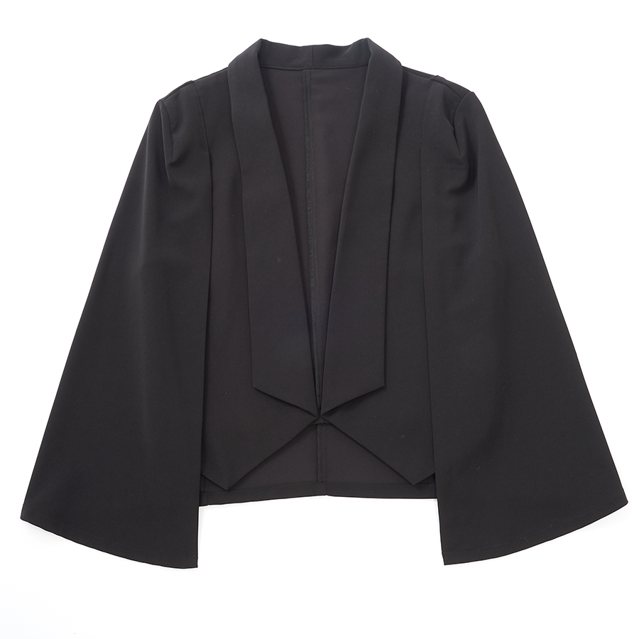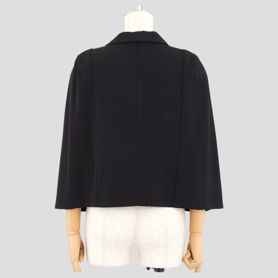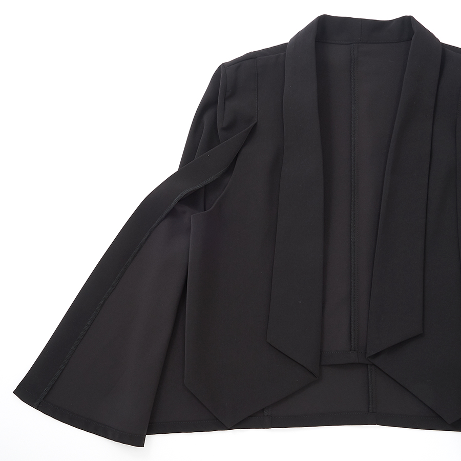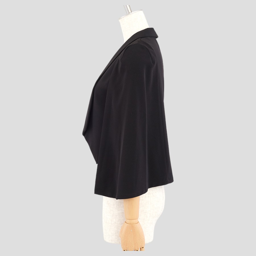 ★スタッフコメント★袖がケープ風になったジャケットボレロです。ジャケットの様なきちんと感を残しつつ、こなれた印象に仕上げてくれます。結婚式やパーティー、お呼ばれに是非ご利用ください。※こちらは裏地なしの商品です。